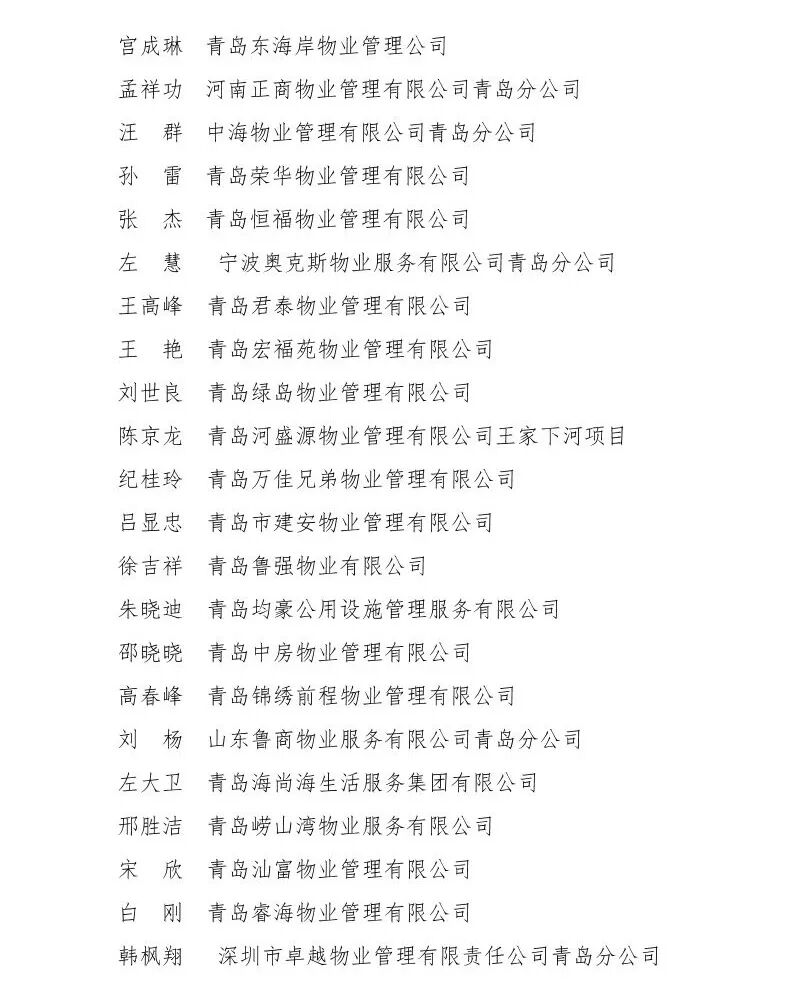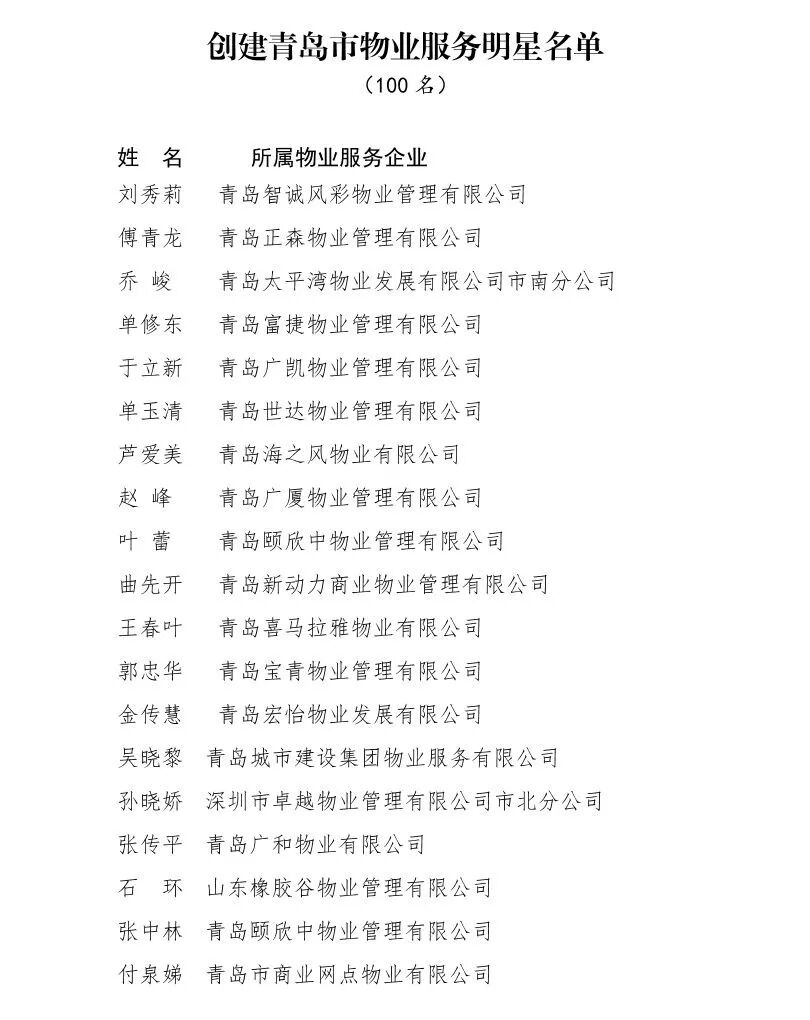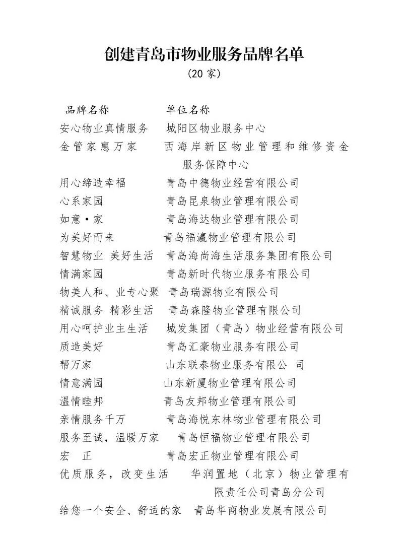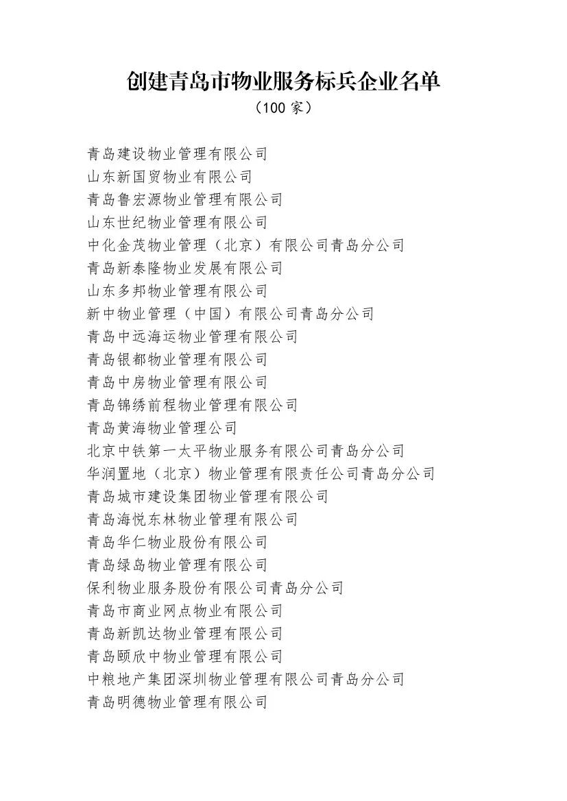 近日,青島市住房城鄉(xiāng)建設(shè)局發(fā)布了《關(guān)于對創(chuàng)建青島市物業(yè)服務(wù)品牌、標(biāo)兵企業(yè)、示范項目、服務(wù)明星名單的公示》,名單中包括20個青島市物業(yè)服務(wù)品牌、100家青島市物業(yè)服務(wù)標(biāo)兵企業(yè)、200個青島市物業(yè)服務(wù)示范項目以及100名青島市物業(yè)服務(wù)明星。