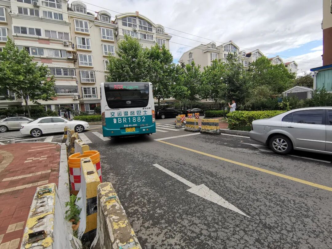 15日上午9時(shí)許,記者來(lái)到同安一路603路終點(diǎn)站。這是一條雙向兩車道道路,道路東側(cè)便是青島65中,西側(cè)離著不到十米就是居民樓。早高峰時(shí)段剛過(guò),此時(shí)正是車輛陸續(xù)返回的時(shí)候。記者發(fā)現(xiàn),道路東側(cè)已停了不少車輛,回來(lái)的公交車只能緊靠著馬路停放。沒(méi)多久,馬路上就停放了四輛公交車,僅剩下一個(gè)車道可以通行。遇到對(duì)向有車經(jīng)過(guò),兩車相遇時(shí)必須有車輛倒車才能通過(guò)。順著同安路一路往北,為了防止車輛違法停放,相關(guān)部門還設(shè)置了水泥墩。