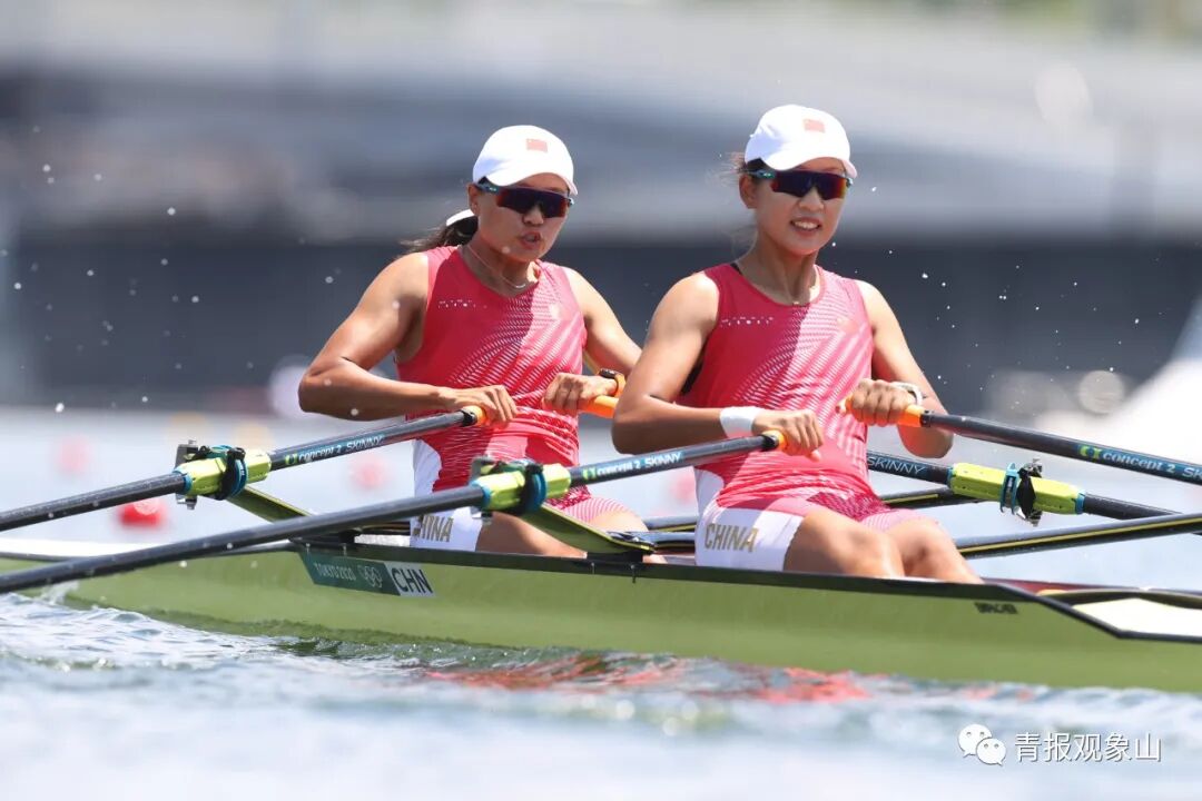7月23日,中國(guó)隊(duì)選手沈雙美(左)/劉曉鑫在女子雙人雙槳預(yù)賽中。新華社記者 鄭煥松 攝