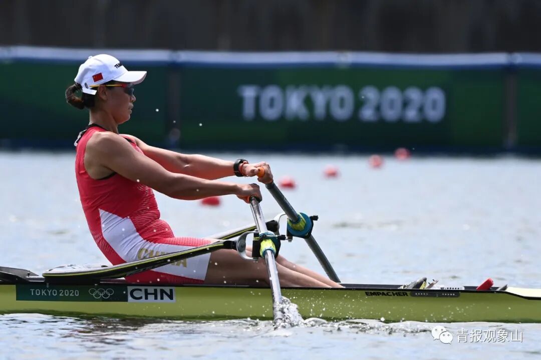 7月23日,中國(guó)隊(duì)選手江燕在女子單人雙槳預(yù)賽中。新華社記者 戴天放 攝