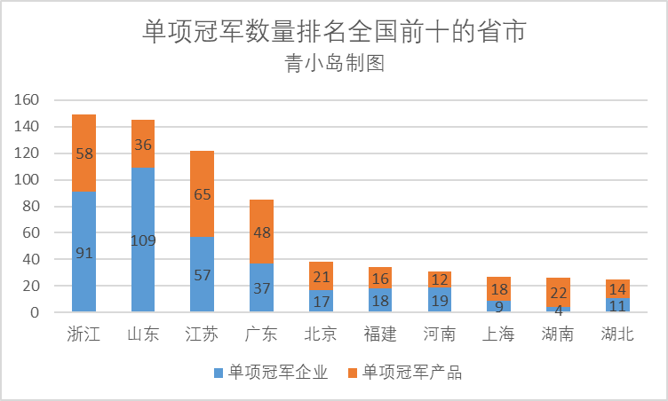 六批累計(jì)計(jì)算,山東的單項(xiàng)冠軍企業(yè)高居全國第一位,單項(xiàng)冠軍企業(yè)與單項(xiàng)冠軍產(chǎn)品總量,位居全國第二。