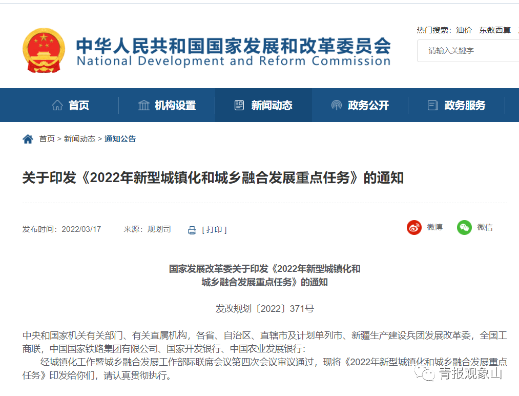此番,國家發(fā)改委印發(fā)《2022年新型城鎮(zhèn)化和城鄉(xiāng)融合發(fā)展重點任務(wù)》,為今年的城鎮(zhèn)化工作定了調(diào)、劃定了路線圖,也為青島新型城鎮(zhèn)化和城鄉(xiāng)融合發(fā)展指明了方向,劃定了重點。