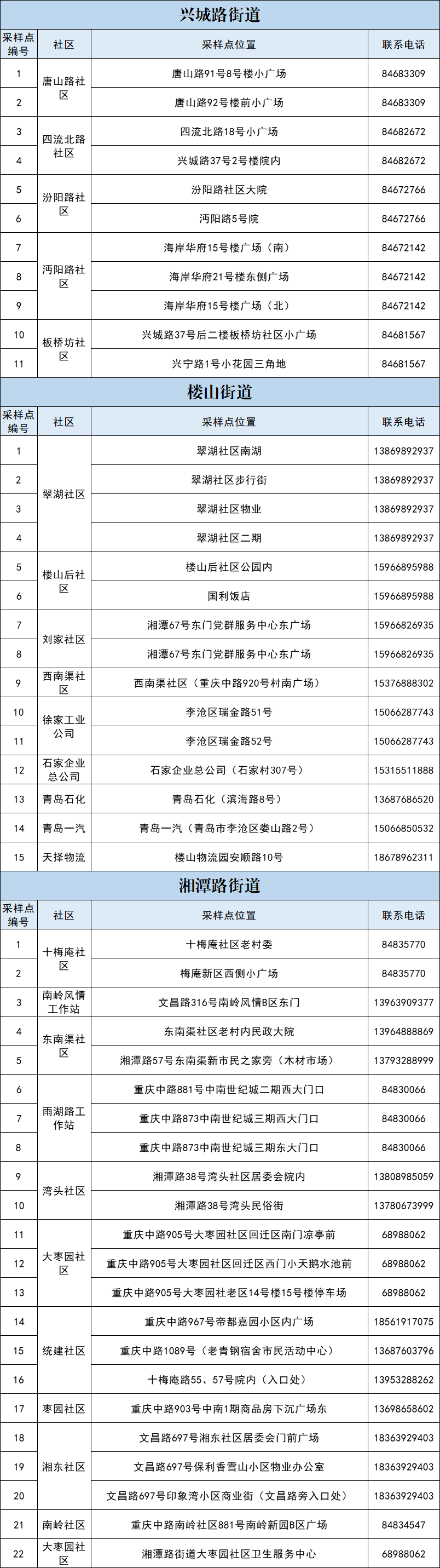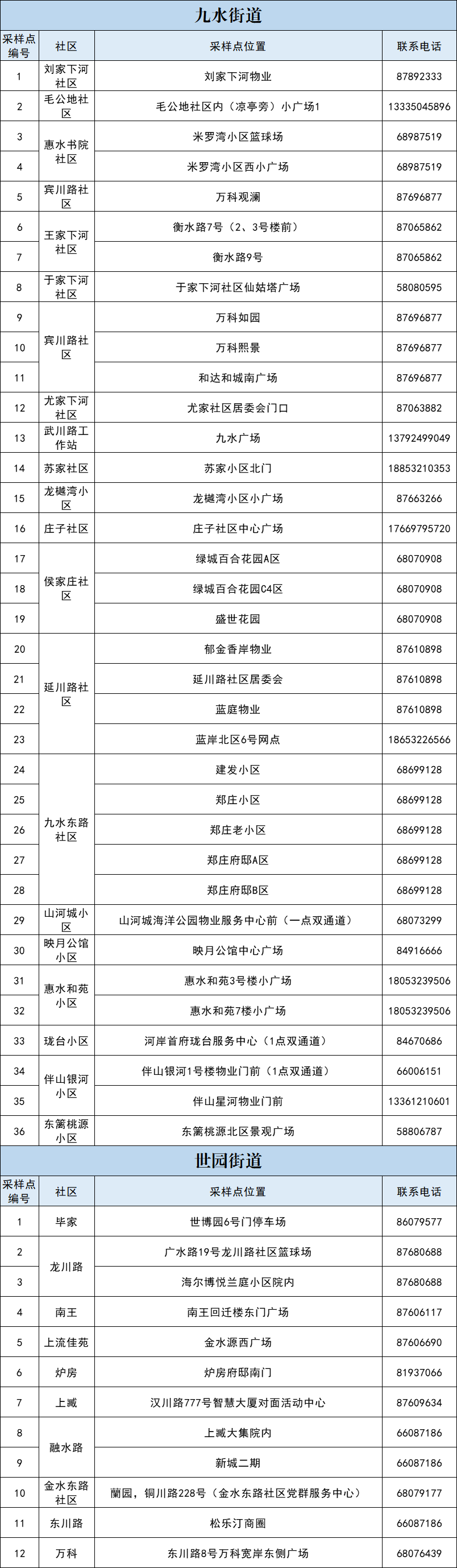 李滄區(qū)全體居民核酸檢測采樣點一覽表