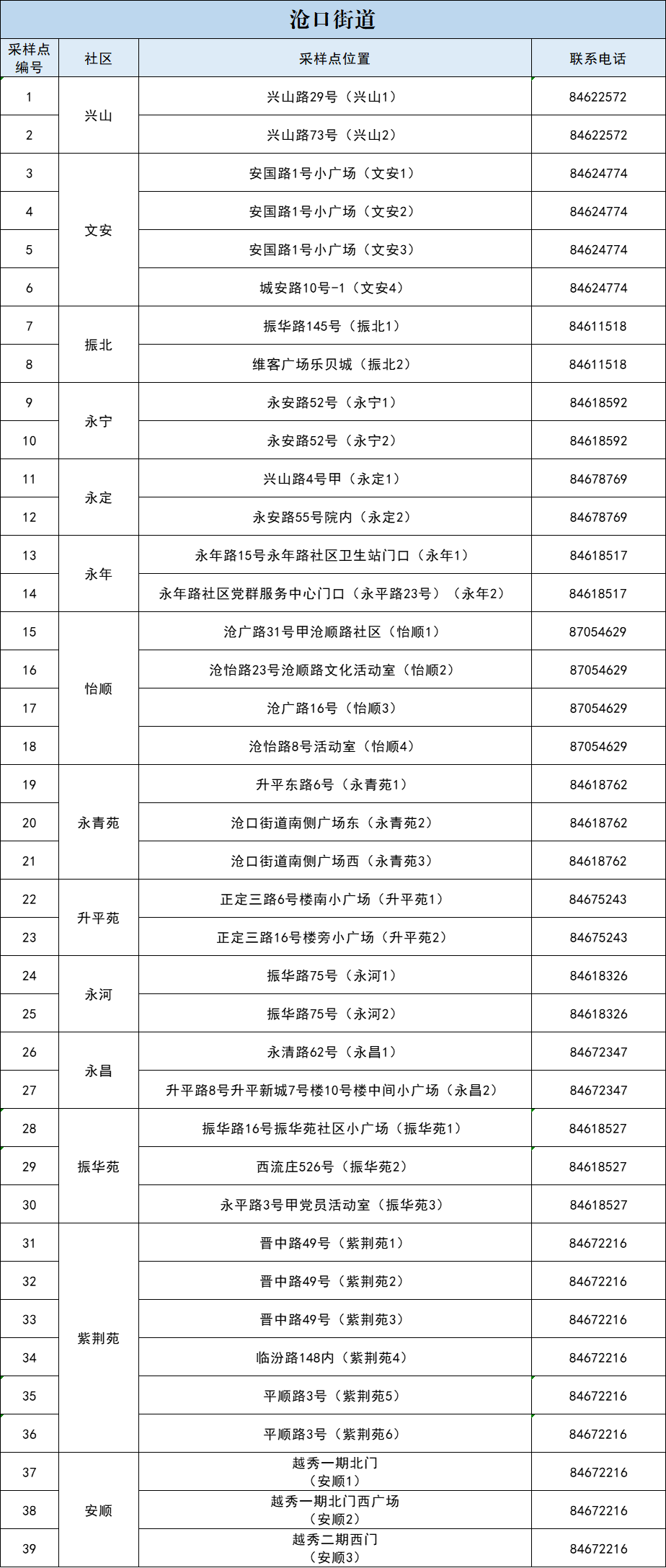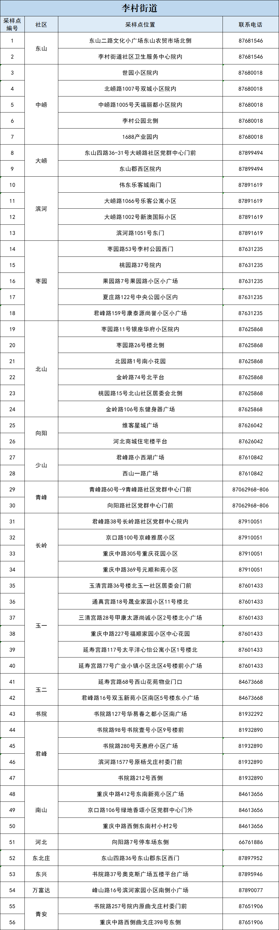 李滄區(qū)區(qū)域核酸檢測采樣點一覽表