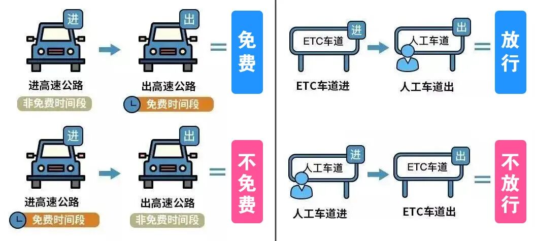 4月3日0時(shí)至4月5日24時(shí),7座及以下載客車輛以及允許在普通收費(fèi)公路行駛的摩托車將免費(fèi)通行。其中,普通公路以車輛通過收費(fèi)站收費(fèi)車道的時(shí)間為準(zhǔn),高速公路以車輛駛離出口收費(fèi)車道的時(shí)間為準(zhǔn)。提醒駕駛?cè)耍哼M(jìn)入高速公路如選擇的是ETC車道,那駛出時(shí)既可以走ETC車道也可以走人工車道,但走人工車道可能需要將ETC卡拔下,交給收費(fèi)站工作人員刷卡;如果進(jìn)入高速公路時(shí)選擇的是人工車道,那駛出時(shí)必須走人工車道,因?yàn)镋TC車道并沒獲取到駛?cè)胄畔ⅲ援?dāng)駛出時(shí)走ETC車道,擋桿不會(huì)抬起,不予放行。