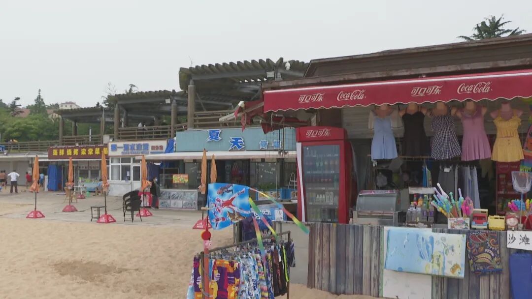 青島第一海水浴場經(jīng)營商戶王先生:東西都備好了,泳衣、沙灘上的這些玩具,吃的那些東西、小孩的那些東西都有了,早上七八點(diǎn)開門。(晚上幾點(diǎn)關(guān)?)也得六七點(diǎn)鐘。