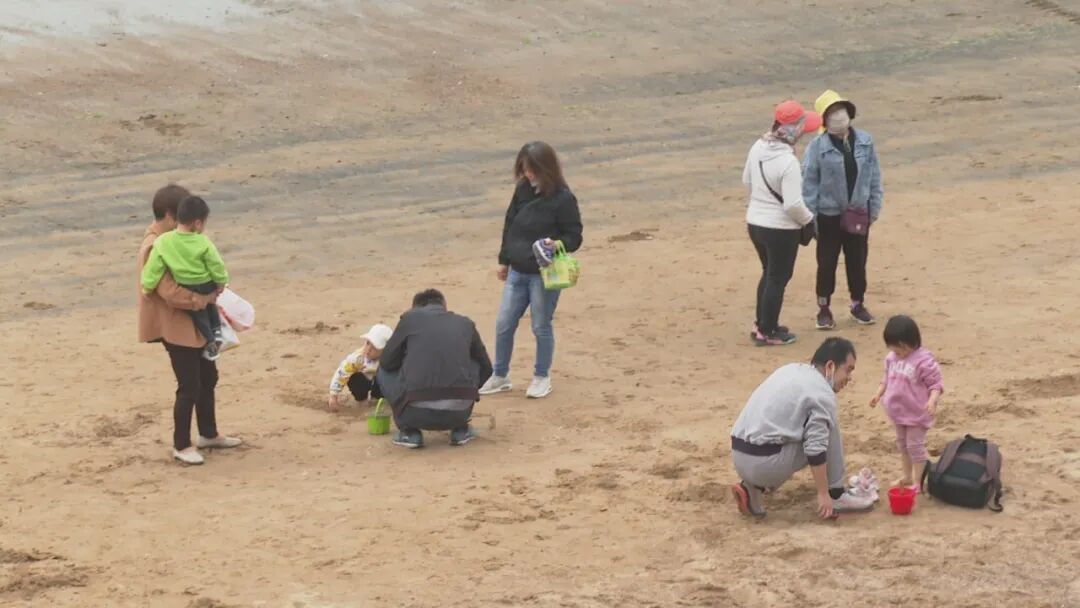 上午,記者在第一海水浴場看到,不少市民利用周末休息時(shí)間,和家人一起來海邊休閑。由于浴場尚未開放,因此沙灘成了孩子們玩耍的“主戰(zhàn)場”。