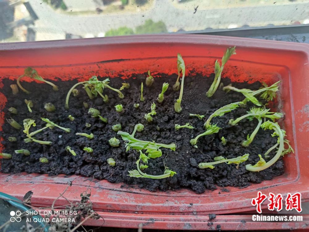 陽(yáng)臺(tái)芹菜發(fā)芽了。受訪者供圖