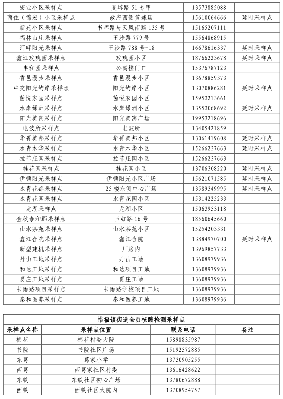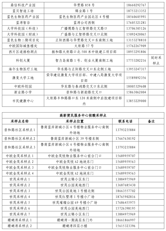 各街道、高新區(qū)防指辦、高新便民服務中心就近設置采樣點(采樣點信息附后),請關注區(qū)及各街道、高新區(qū)防指辦、高新便民服務中心發(fā)布的信息。