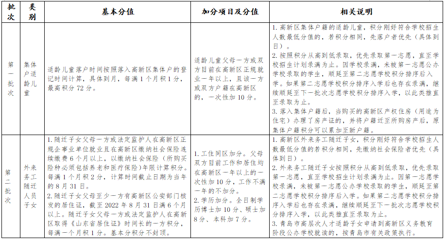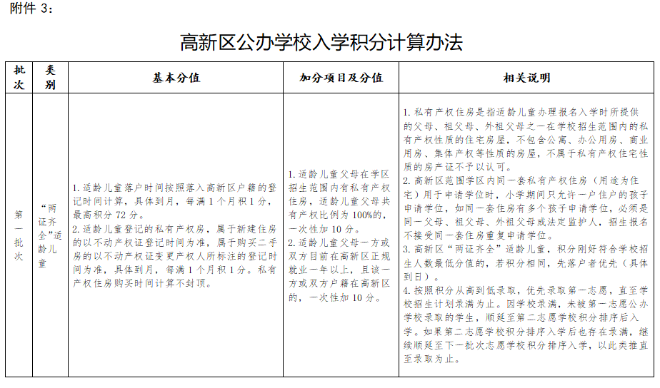 高新區(qū)公辦學(xué)校入學(xué)積分計算辦法如下
