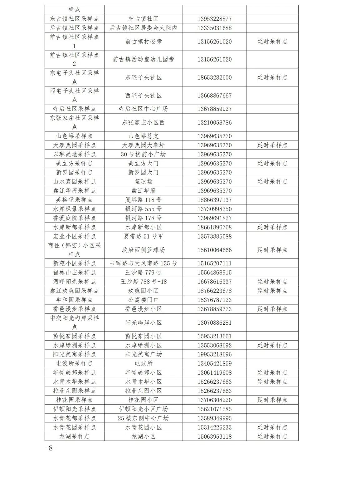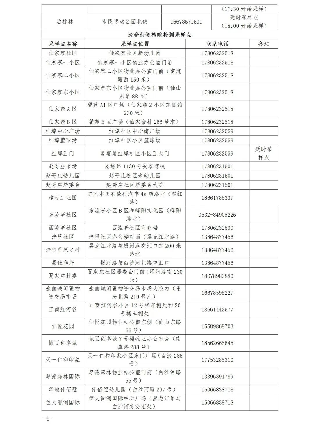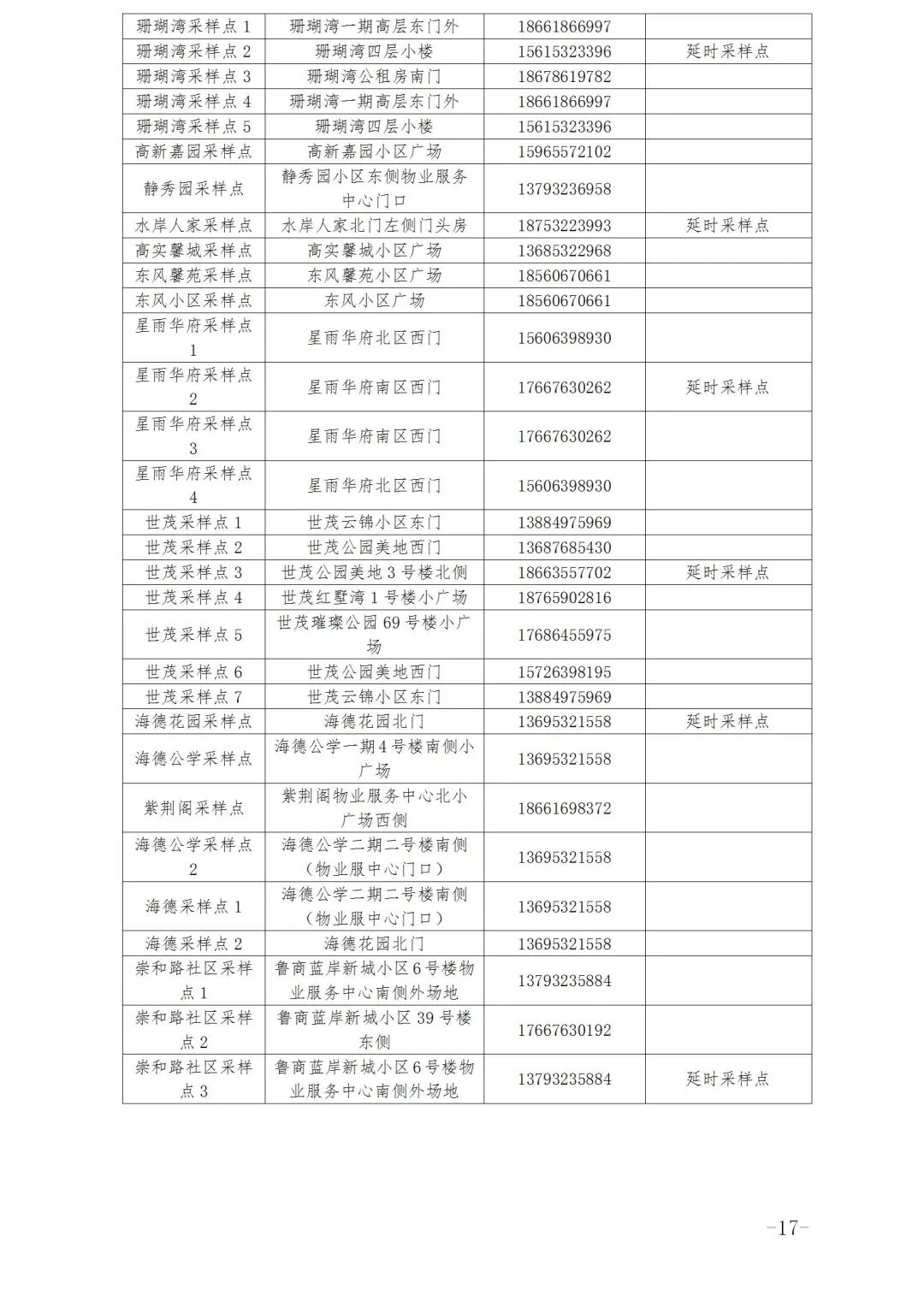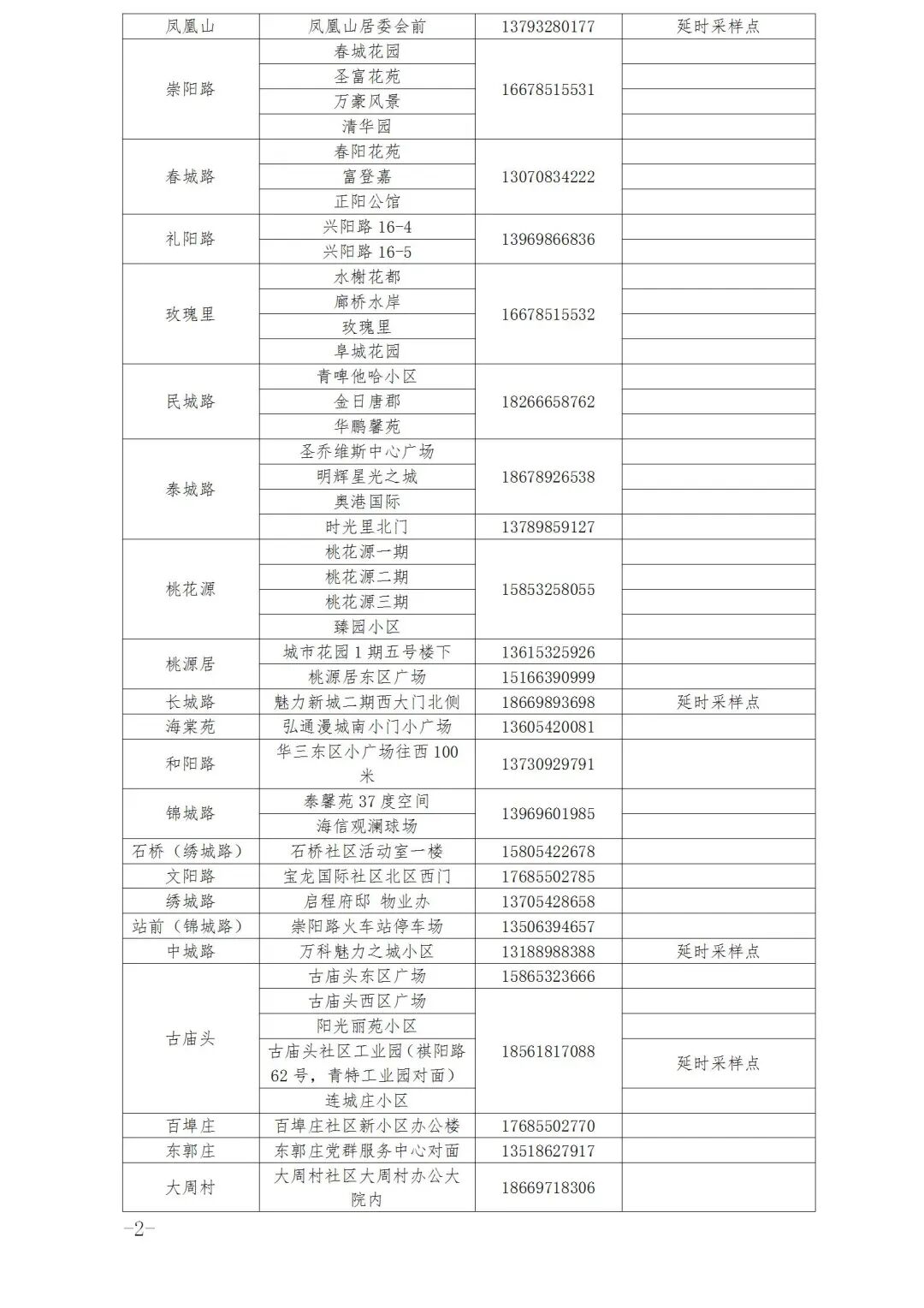 各街道、高新區(qū)防指辦、高新便民服務(wù)中心就近設(shè)置采樣點(diǎn)(采樣點(diǎn)信息附后),請關(guān)注區(qū)及各街道、高新區(qū)防指辦、高新便民服務(wù)中心發(fā)布的信息。