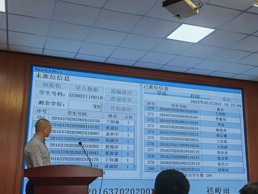 上午8點半,海信學(xué)校七年級新生入學(xué)電腦派位正式開始?,F(xiàn)場有三位社會監(jiān)督員、市南公證處的公證員、市南區(qū)教育和體育局相關(guān)處室工作人員、新聞媒體記者和30名家長代表參加。電腦派位是利用隨機函數(shù)設(shè)計成的電腦程序,通過程序的運行,每個學(xué)生被志愿報名學(xué)校錄取的條件均等、機會均衡,確保了錄取工作的公開、公平、公正。經(jīng)過拆封電腦、查驗人數(shù)、家長查詢、進行混編、電腦派位錄取、打印《新生錄取花名冊》、公證確認7個步驟,最終產(chǎn)生65名學(xué)生錄取名單。