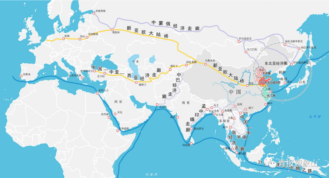青島是“新亞歐大陸橋經(jīng)濟(jì)走廊重要節(jié)點(diǎn)和21世紀(jì)海上絲綢之路主要節(jié)點(diǎn)”雙定位城市、“一帶一路”國際合作新平臺所在城市、黃河流域生態(tài)保護(hù)和高質(zhì)量發(fā)展核心和港口門戶城市。在新發(fā)展格局中,青島既是內(nèi)外循環(huán)的“雙節(jié)點(diǎn)”城市,又是國內(nèi)南北、東西大循環(huán)的“雙節(jié)點(diǎn)”城市。