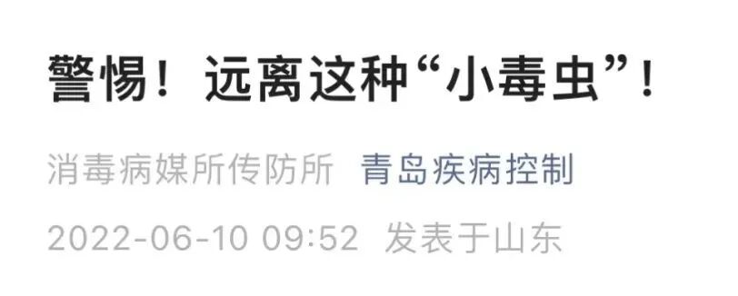夏天到了,遠離這種“小毒蟲”!青島市疾控中心發(fā)布最新提醒