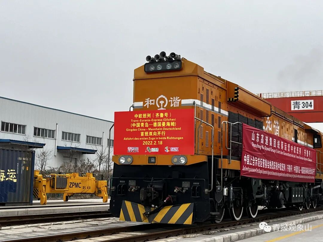 2022年2月18日下午,中歐班列(齊魯號(hào))中國(guó)青島——德國(guó)曼海姆首班雙向開(kāi)行