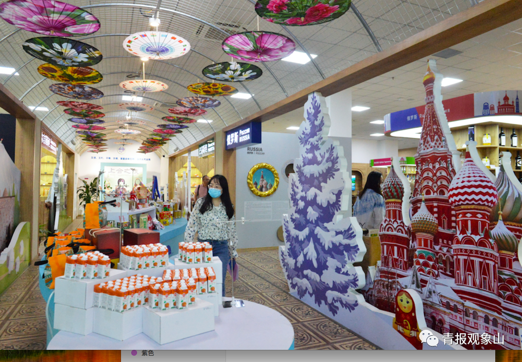 上合特色商品館的上合走廊展示特色食品、酒水和工藝品