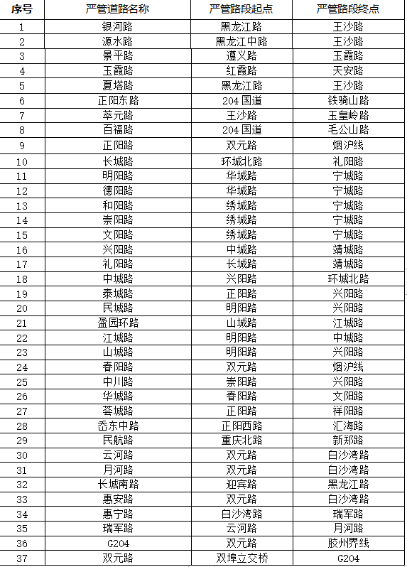 為進一步加強全區(qū)道路交通安全管理工作,緩解城區(qū)道路交通擁堵,提高道路通行效率,創(chuàng)建文明暢通有序的道路交通環(huán)境,根據《中華人民共和國道路交通安全法》、《中華人民共和國道路交通安全法實施條例》等法律法規(guī)規(guī)定,青島市公安局城陽分局交警大隊結合轄區(qū)道路實際,現將37條道路部分路段確定為機動車嚴格管理路段(簡稱“嚴管路段”),對違法停車等交通違法行為進行嚴查嚴管,自2022年6月15日起執(zhí)行?,F將相關路段通告如下: