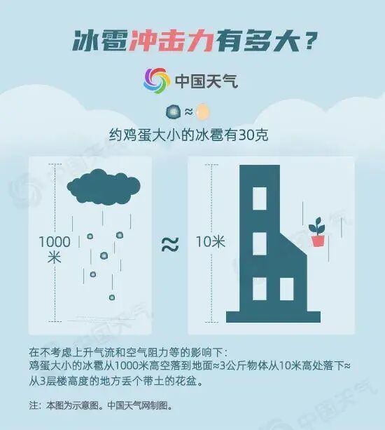 需要注意的是,以上換算是未考慮空氣阻力以及上升氣流運(yùn)動(dòng)等因素的估算結(jié)果,冰雹在下降過程中,會(huì)不可避免地受到空氣阻力等因素的影響,殺傷力可能有所衰減,但遭遇冰雹,我們依然不可掉以輕心。