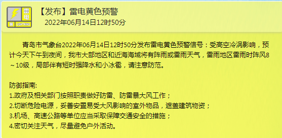 青島市氣象臺(tái)14日16時(shí)發(fā)布: