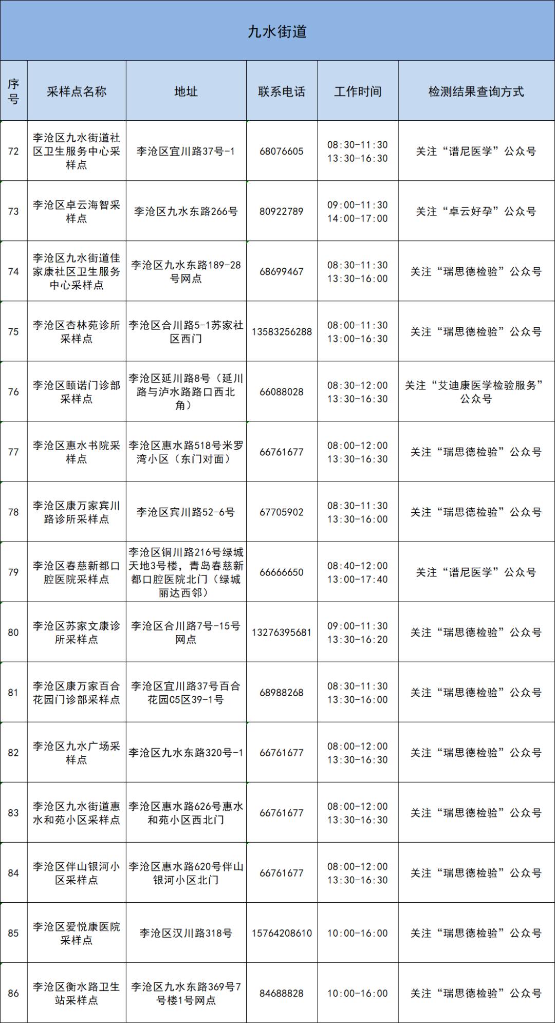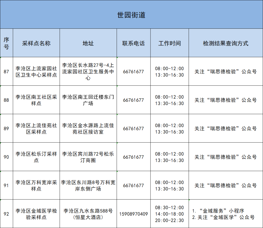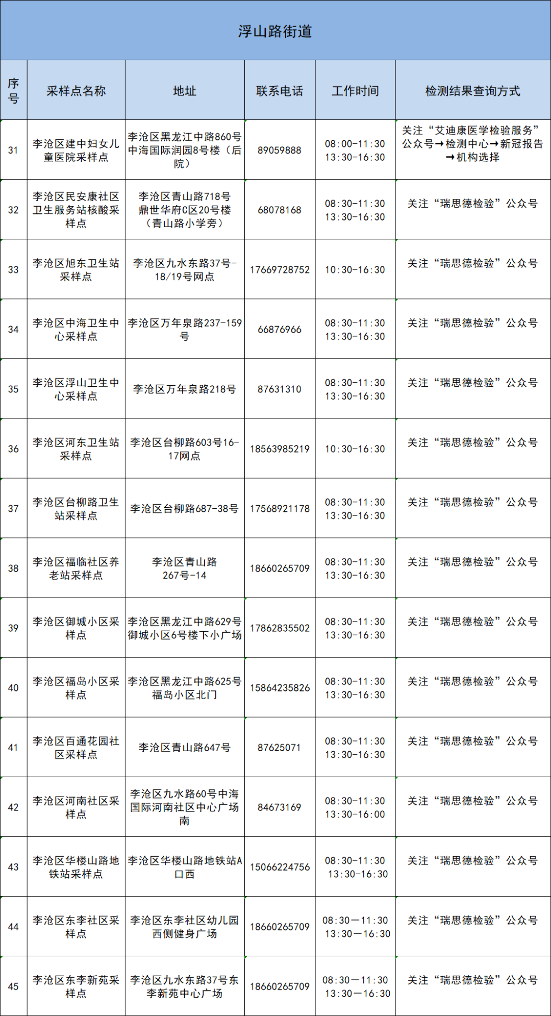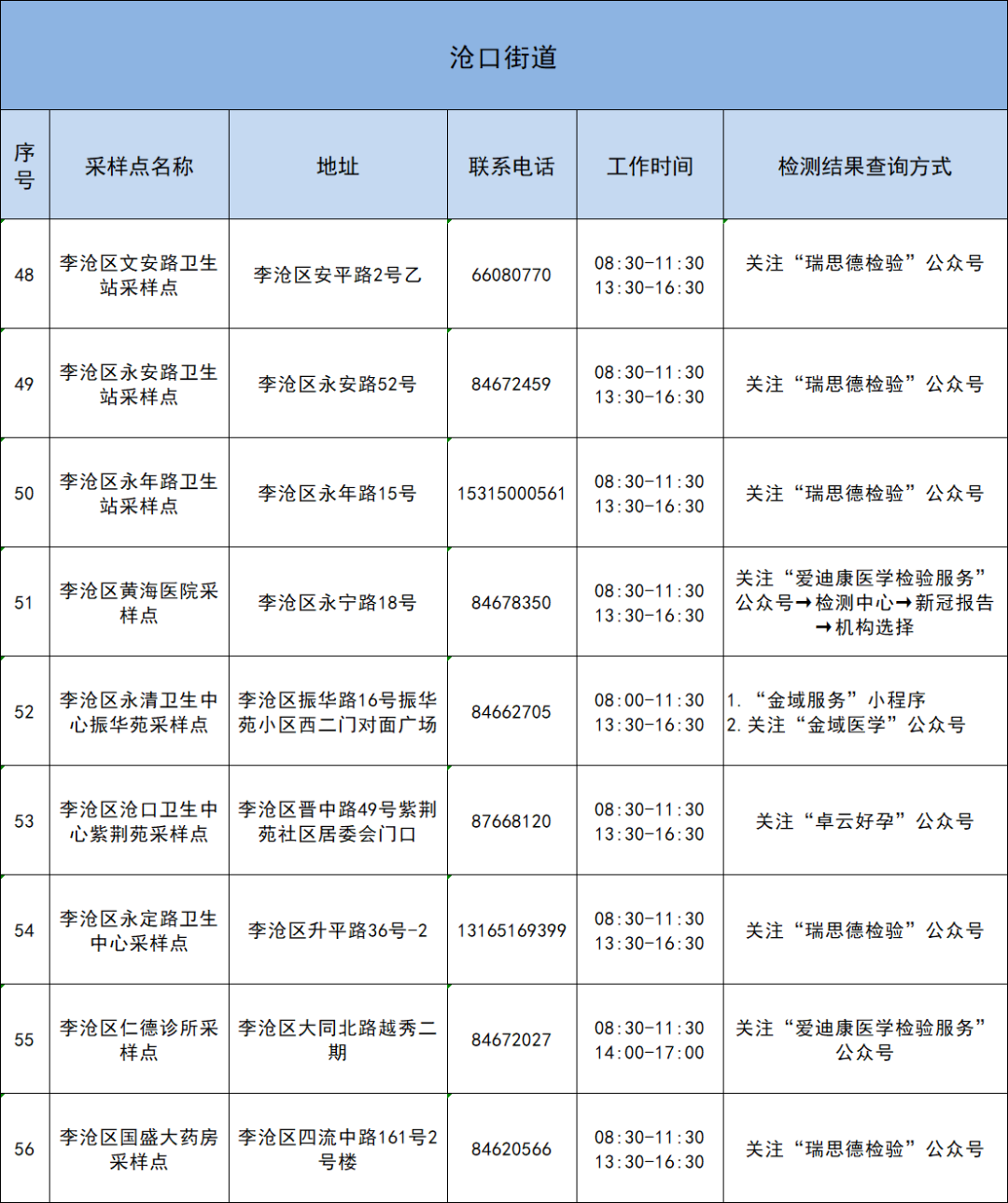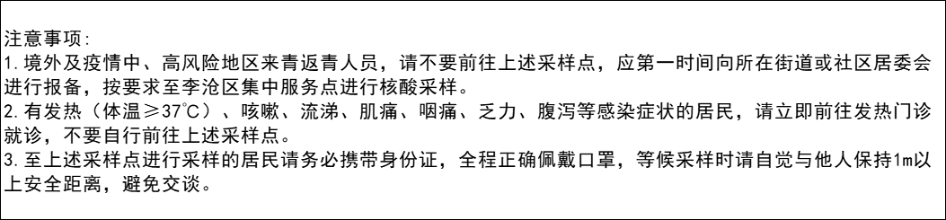 李滄區(qū)全體居民核酸檢測采樣點一覽表