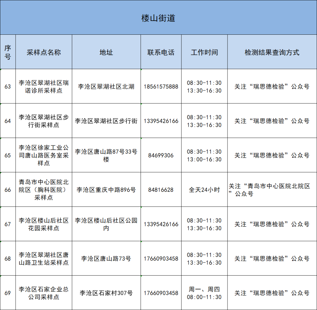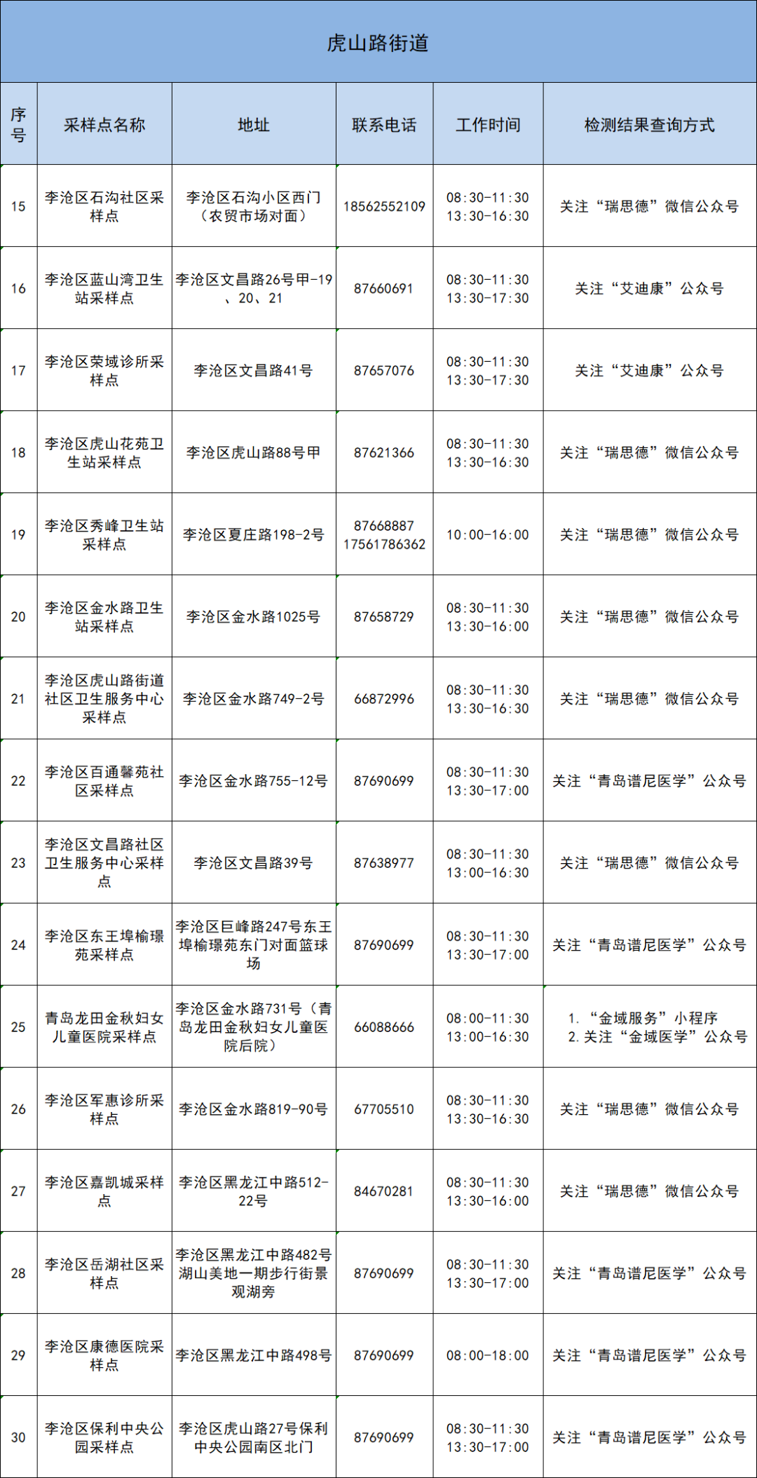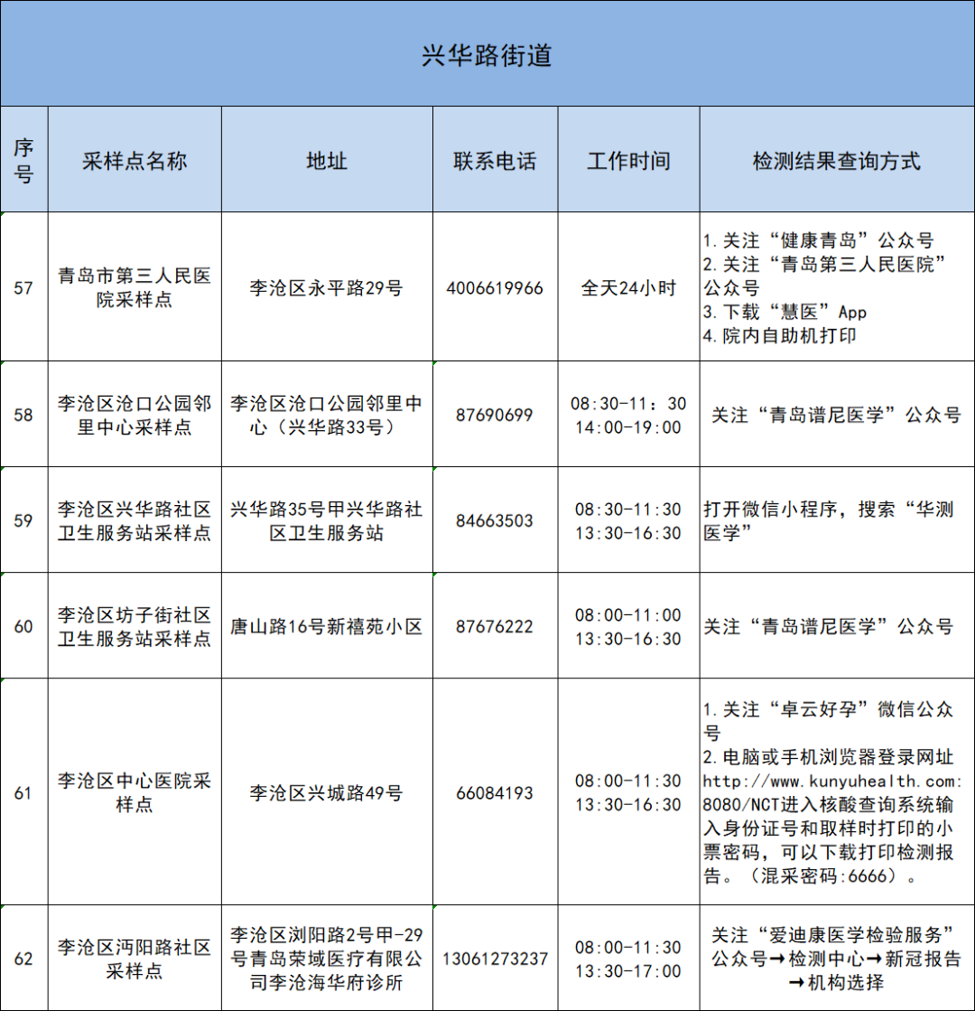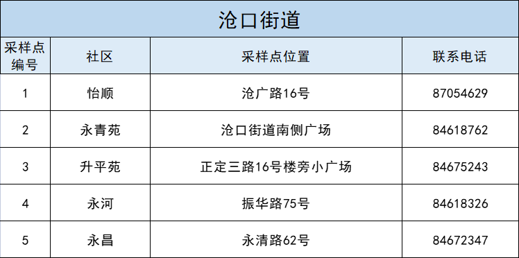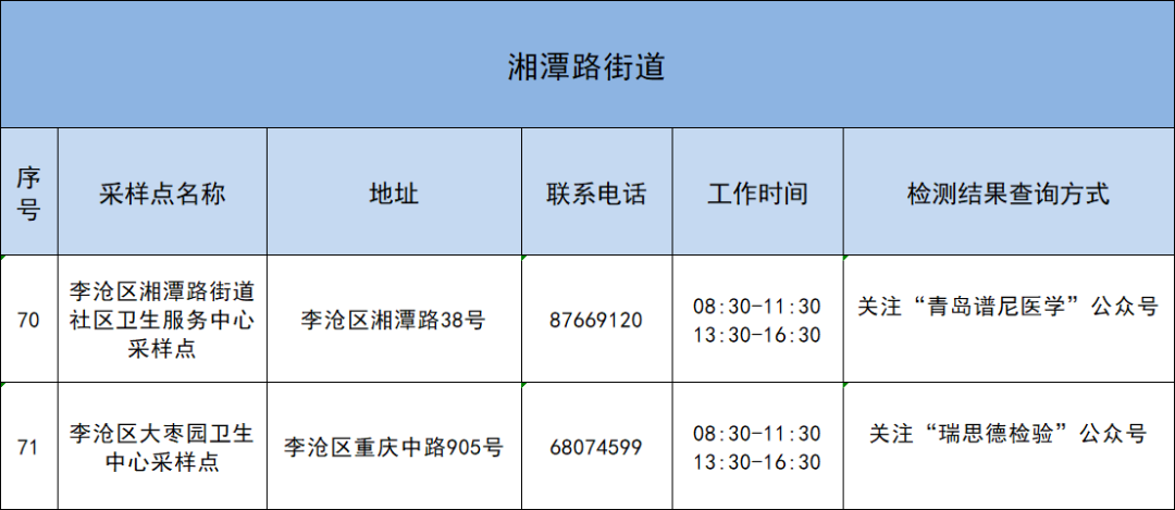 李滄區(qū)全體居民核酸檢測采樣點一覽表