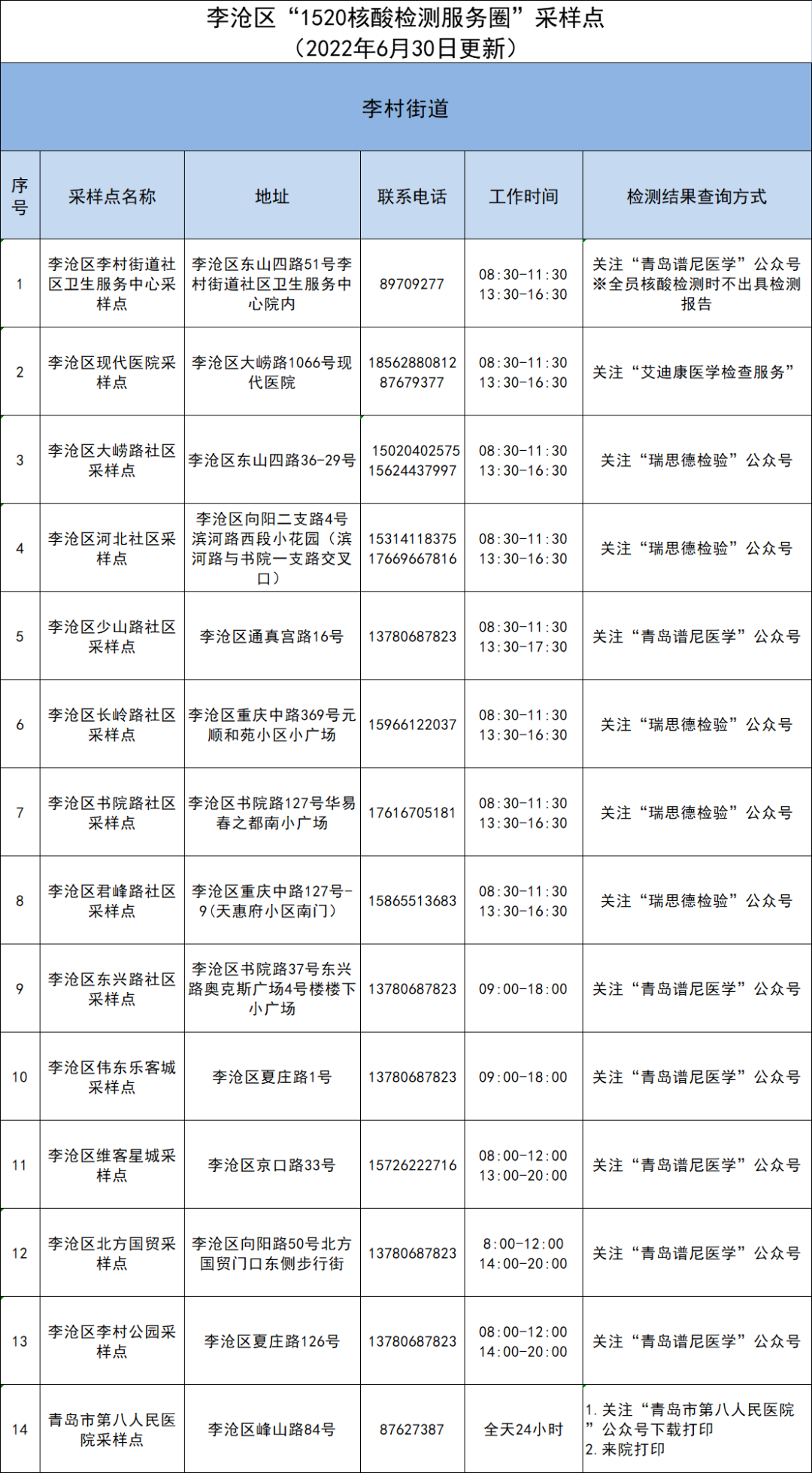 李滄區(qū)“1520核酸檢測服務(wù)圈”采樣點詳情見本通告下方。