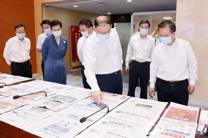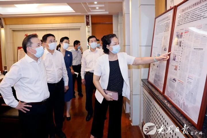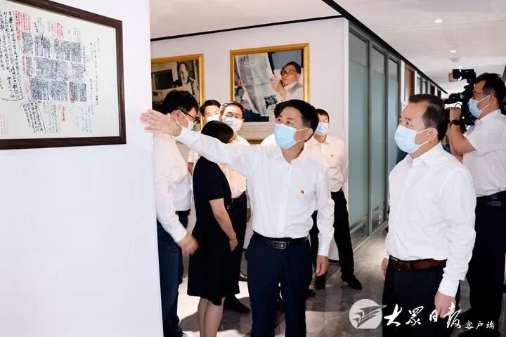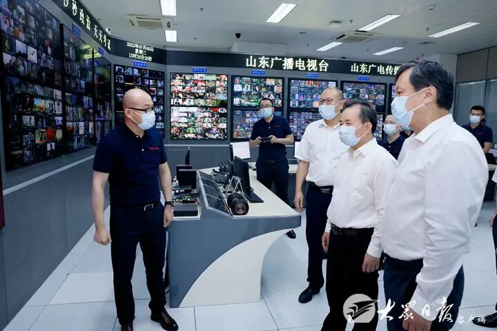 在大眾報業(yè)集團,李干杰參觀大眾日報社史陳列館,察看融媒體中心、大眾日報全媒創(chuàng)新基地等,聽取推進媒體深度融合發(fā)展、做大做強主流輿論影響力有關(guān)情況匯報。在山東廣播電視臺,察看融媒體工作平臺、IPTV新媒體播控中心、電視播控中心等,了解人才激勵、媒體融合、精品創(chuàng)優(yōu)、產(chǎn)業(yè)發(fā)展等情況。