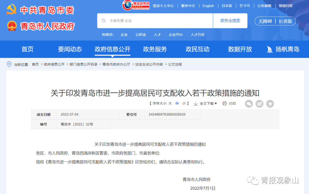 好消息,事關(guān)你的“錢包”!青島出臺52條,全力提高居民收入