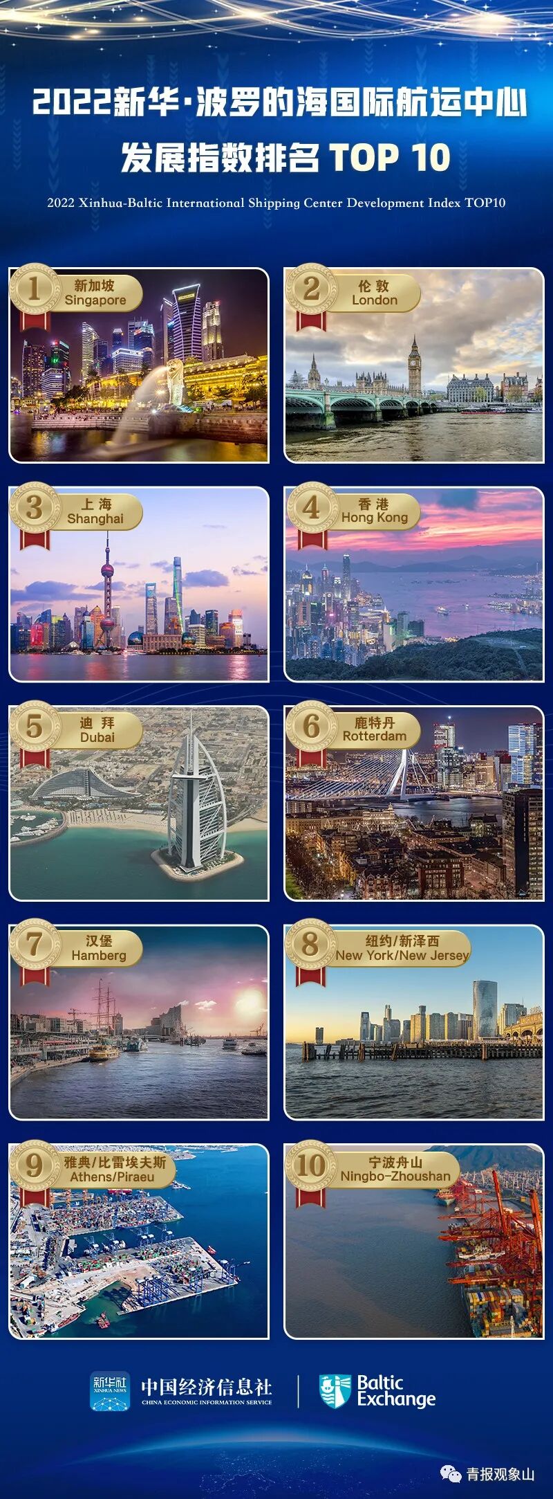 最新結(jié)果顯示,2022年國(guó)際航運(yùn)中心城市排名前20依次是:新加坡、倫敦、上海、香港、迪拜、鹿特丹、漢堡、紐約-新澤西、雅典-比雷埃夫斯、寧波舟山、東京、休斯頓、廣州、安特衛(wèi)普、青島、釜山、深圳、哥本哈根、洛杉磯、墨爾本。