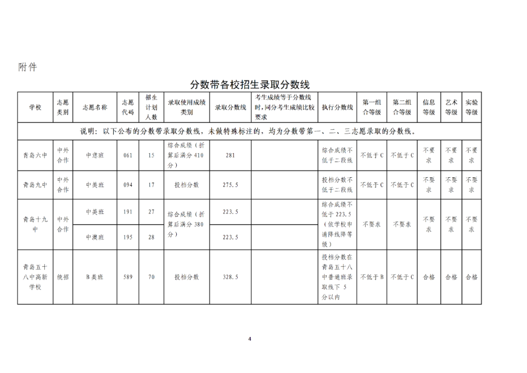 2022年青島市高中階段學(xué)校第二階段分?jǐn)?shù)帶招生錄取分?jǐn)?shù)線公告