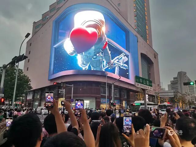 百盛大廈裸眼3D大屏上,破墻而出的蛟龍?zhí)栞d人潛水器,航天員從太空投來愛心,機(jī)器手臂組裝成的棧橋、教堂,再次亮起的天主教堂燈光秀……7月21日晚,市南區(qū)籌備數(shù)月打造的“青島上街里·光影中山路”6大項(xiàng)目亮相,虛實(shí)結(jié)合的視覺沖擊讓不少市民游客大飽眼福。