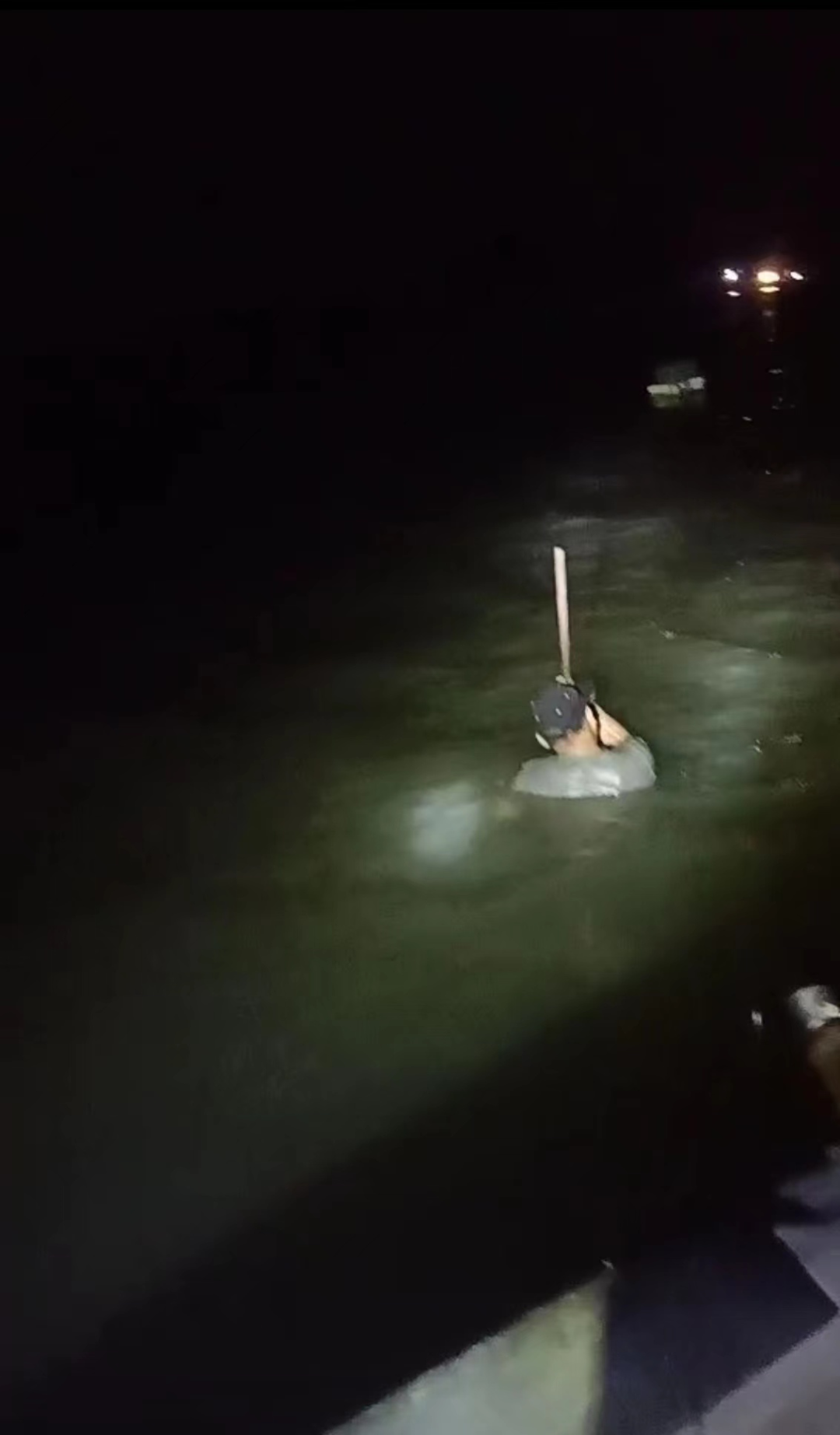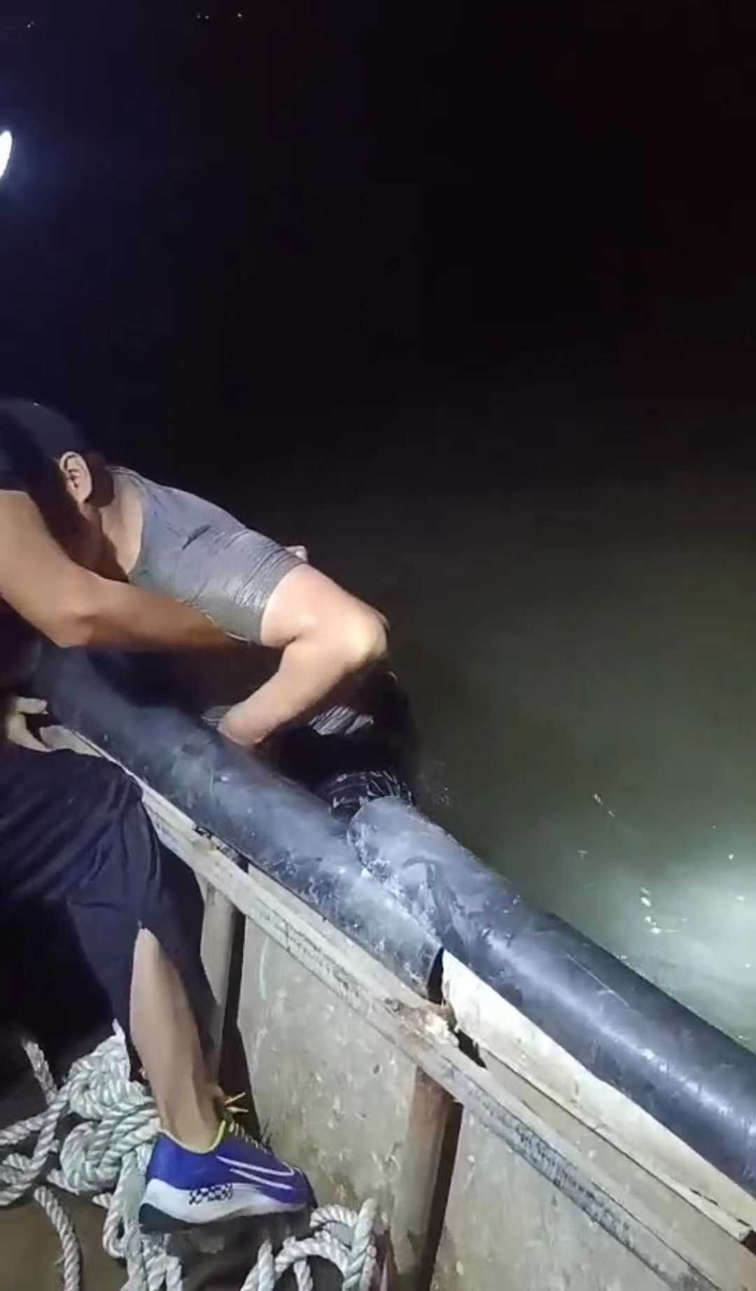 漆黑的夜晚,陳禹和其他三位工人駕駛著小艇出了海。由于報警人只提供了一個大概的位置信息,大家并不知道溺水人的具體位置。