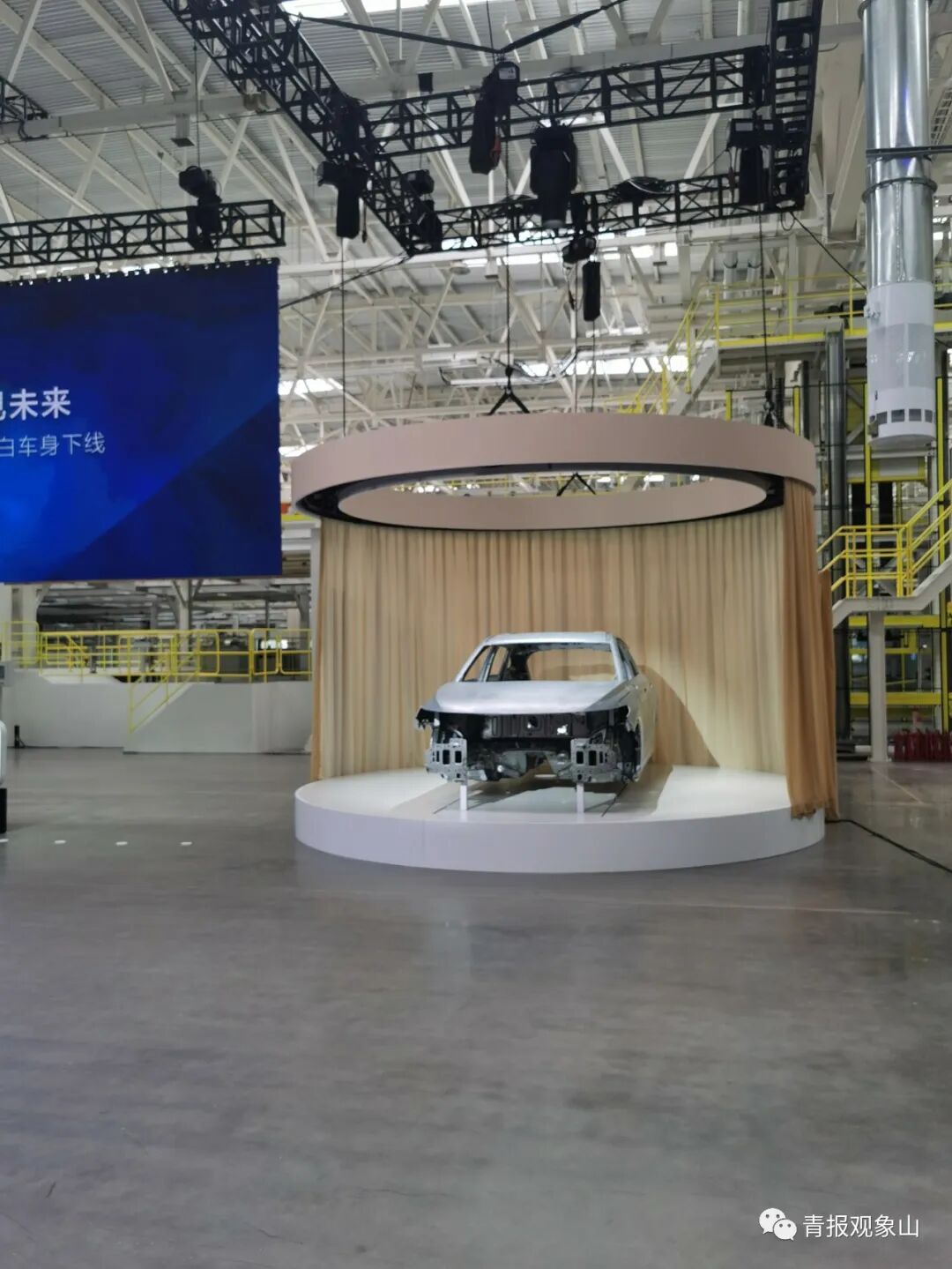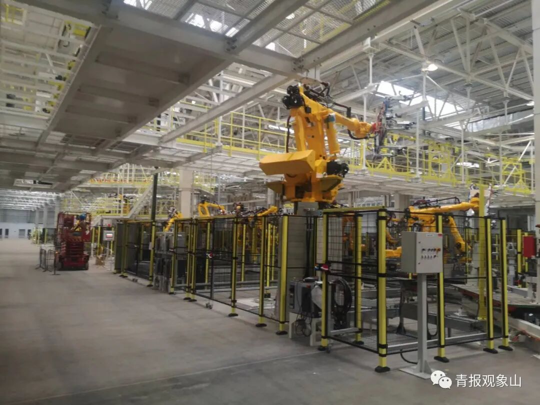 去年2月破土動(dòng)工,2022年元旦前沖壓、焊裝兩大車間主體封頂,春節(jié)前四大車間全部主體完工,今年3月四大車間進(jìn)入裝飾裝修階段,4月份完成四大車間外立面施工,6月沖壓車間、焊裝車間完工,7月30日白車身下線……