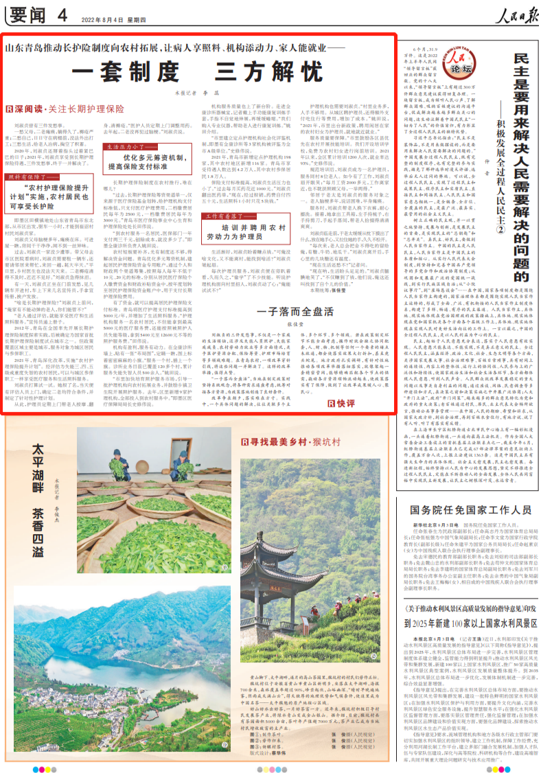 人民日報點贊青島推動長護險制度向農(nóng)村拓展:?一套制度 三方解憂