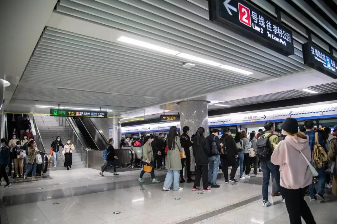 地鐵五四廣場(chǎng)站內(nèi)人流如織