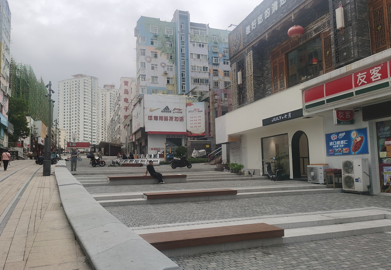 根據(jù)規(guī)劃,臺東步行街臺東三路規(guī)劃為趣玩社區(qū)段、活力商業(yè)段、創(chuàng)想藝術(shù)段。主城君注意到,在趣玩社區(qū)段,托馬斯廣場已經(jīng)開始改造;在活力商業(yè)段,除了兩條小吃街外,規(guī)劃的臺東文化園也已經(jīng)初現(xiàn)雛形,未來將植入楊家河與臺東的歷史故事;在創(chuàng)想藝術(shù)段,階梯廣場已經(jīng)打造完畢,正在進行地磚勾縫等收尾工作。
