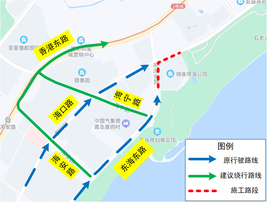 友情提示:東海東路??诼仿房谀线M口、東出口占用車道施工,路口通行能力下降,建議沿東海東路西向東、??诼肺飨驏|通行途經(jīng)東海東路??诼房诘能囕v提前在上游東海東路海安路、東海東路海寧路、??诼泛0猜?、海口海寧路等路口左轉(zhuǎn),繞行香港東路,屆時青島交警會根據(jù)實際交通運行情況,優(yōu)化周邊路口信號配時方案,方便市民出行。