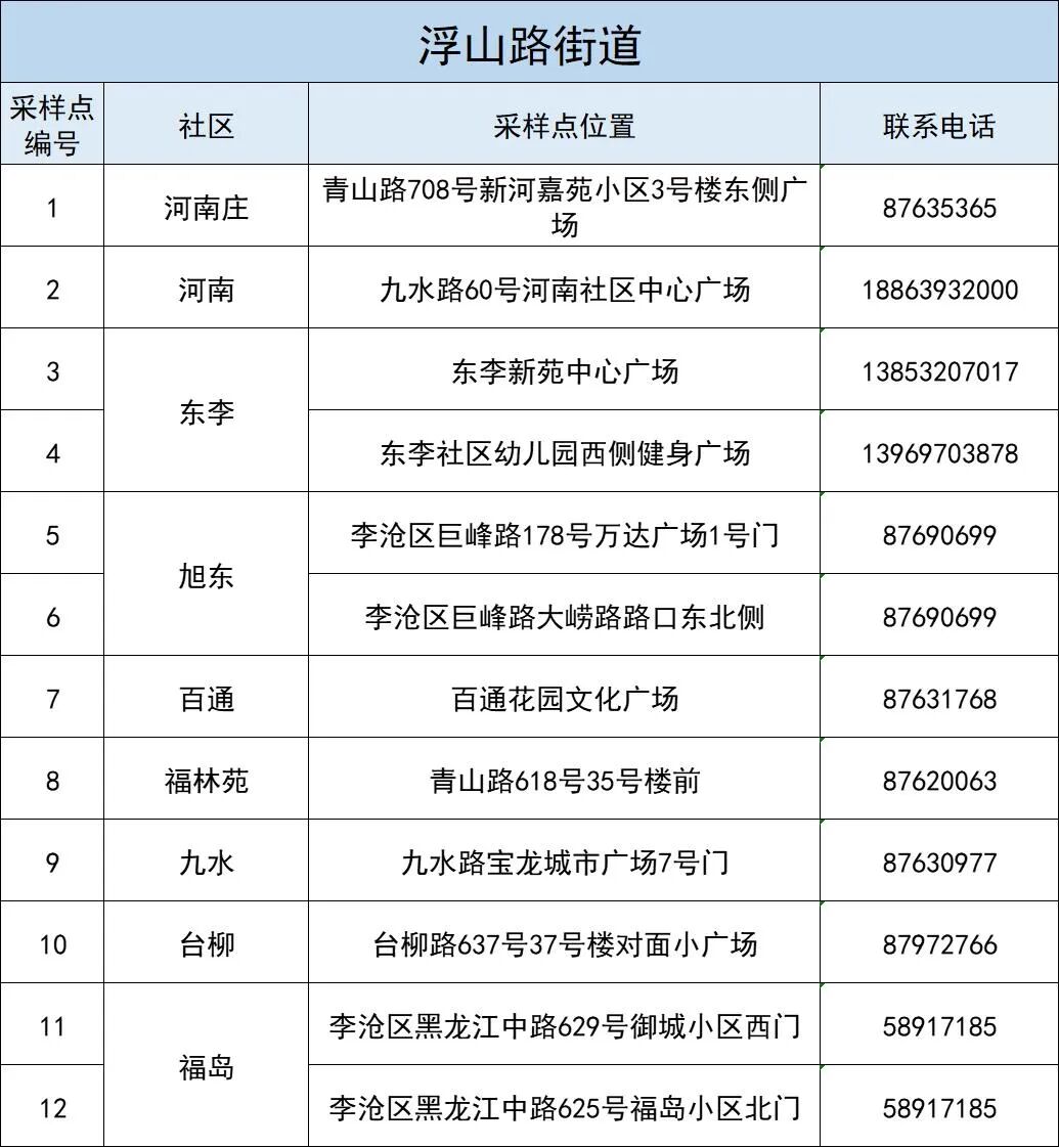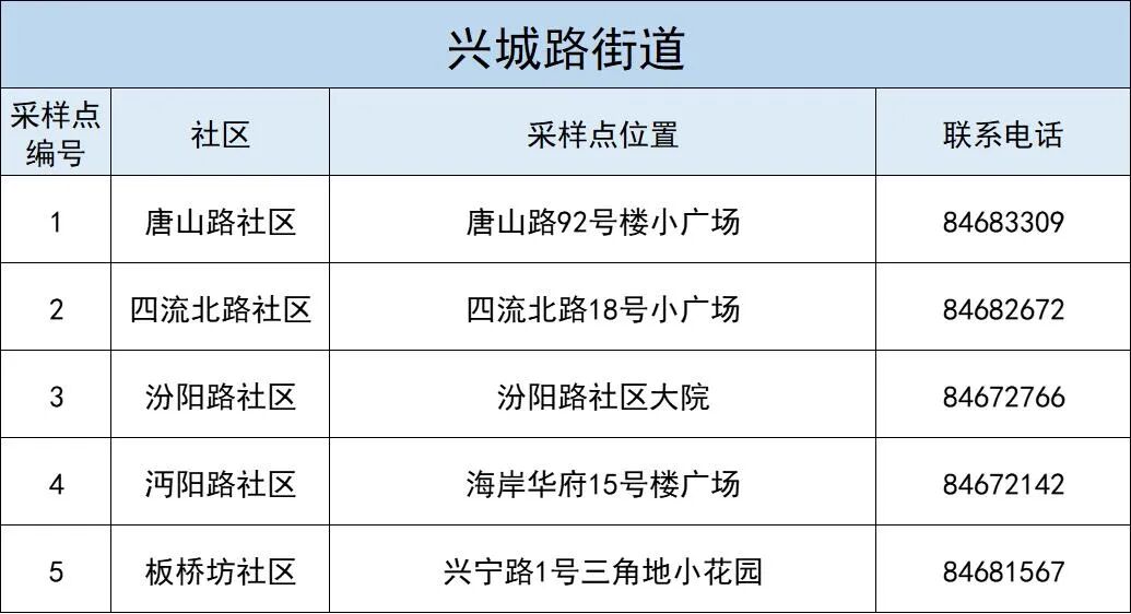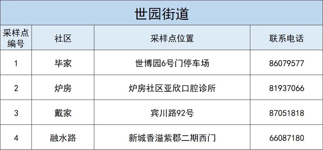 各街道、高新區(qū)防指辦、高新便民服務中心就近設置采樣點(采樣點信息附后),請關注區(qū)及各街道、高新區(qū)防指辦、高新便民服務中心發(fā)布的信息。