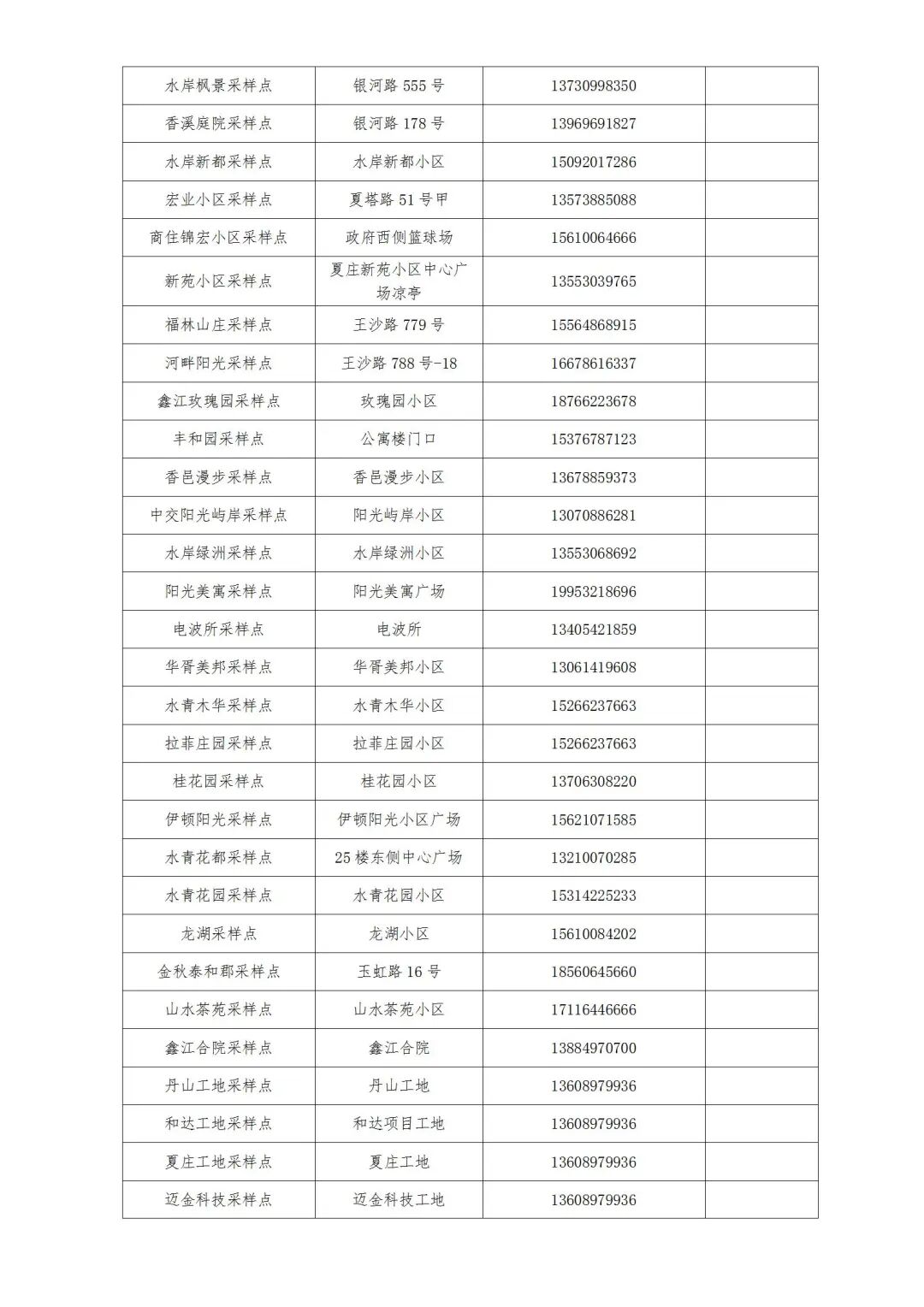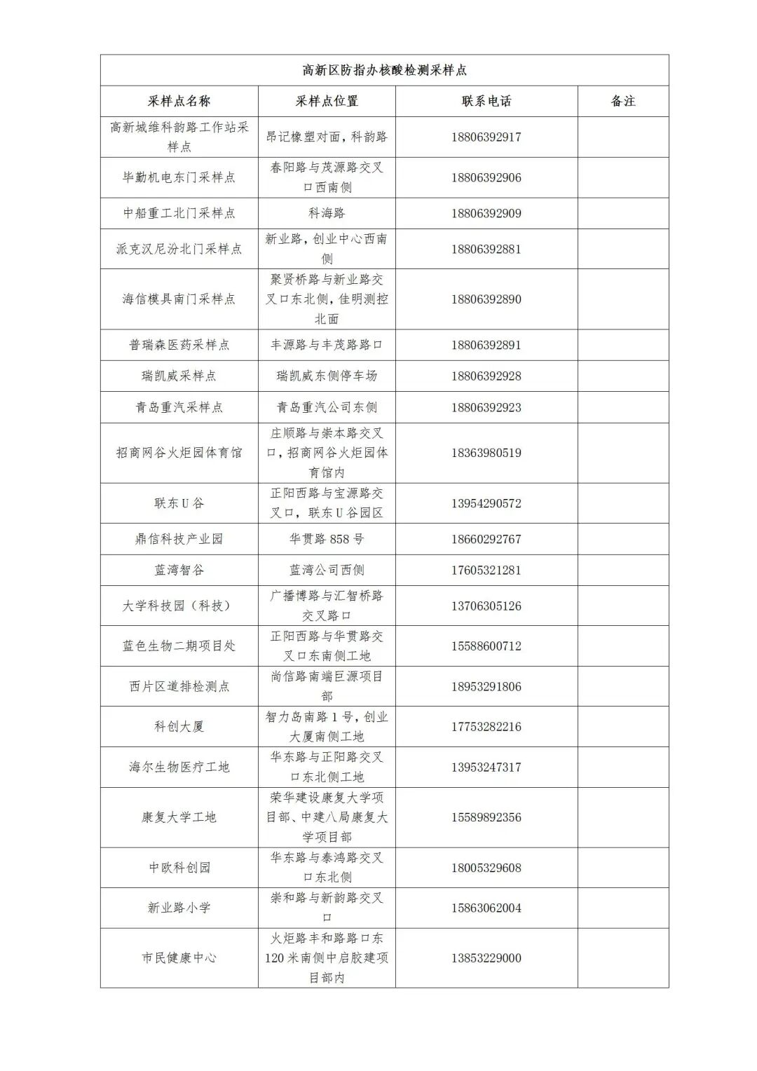 各街道、高新區(qū)防指辦、高新便民服務(wù)中心就近設(shè)置采樣點(采樣點信息附后),請關(guān)注區(qū)及各街道、高新區(qū)防指辦、高新便民服務(wù)中心發(fā)布的信息。