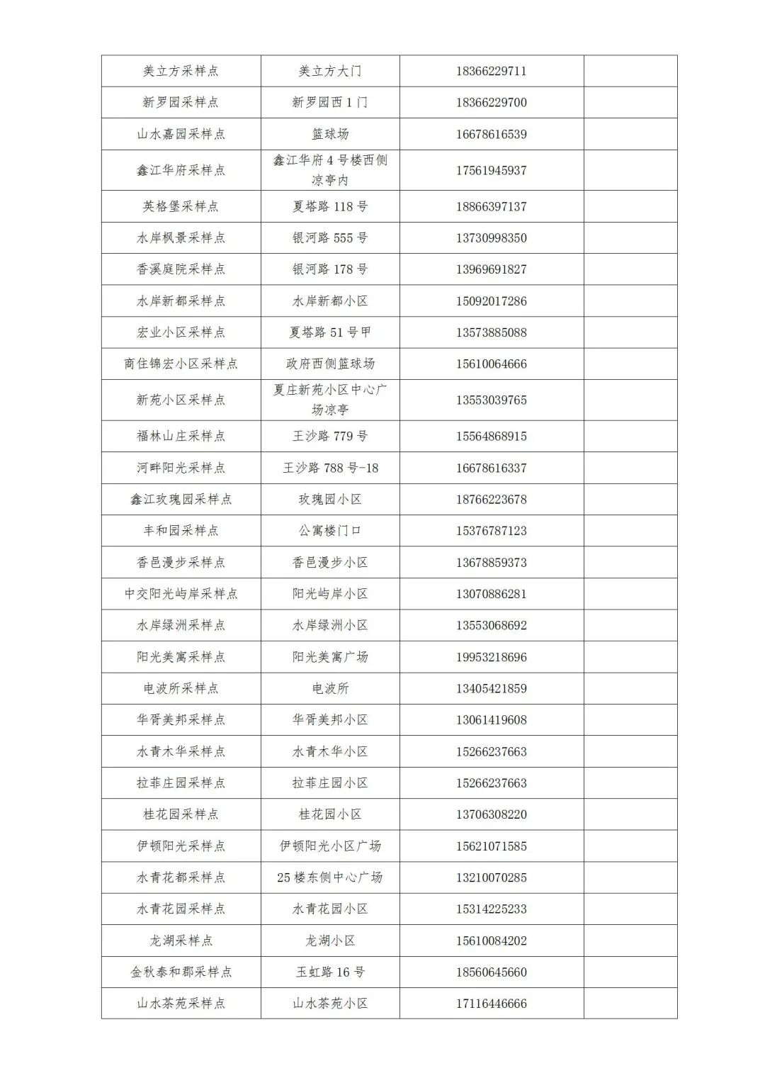 各街道、高新區(qū)防指辦、高新便民服務(wù)中心就近設(shè)置采樣點(采樣點信息附后),請關(guān)注區(qū)及各街道、高新區(qū)防指辦、高新便民服務(wù)中心發(fā)布的信息。
