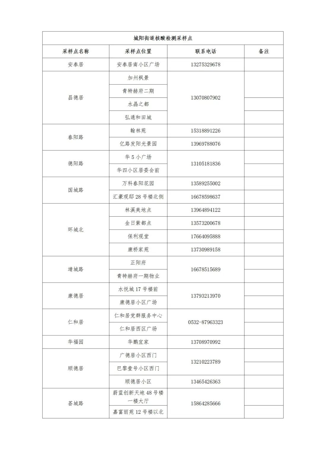 區(qū)黨政機關(guān)事業(yè)單位、各類企業(yè)工作人員如居住地不在城陽區(qū)且未能參加城陽區(qū)全員核酸檢測采樣的,務(wù)必在居住地所在區(qū)及時完成核酸檢測。