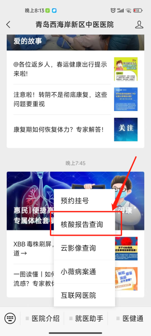 為滿足出境人員需求,2023年1月5日起,青島西海岸新區(qū)中醫(yī)醫(yī)院設(shè)置出境人員核酸采樣點,為市民開展單管采樣服務(wù),并出具中英文版新冠核酸檢驗報告單,具體操作流程如下: