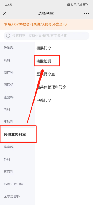 完成掛號繳費后,持就診卡或者電子健康碼去核酸采集處采集,單人單管。(地點位于門診樓前采集點,采集時間為8:00-12:00,13:30-17:00)