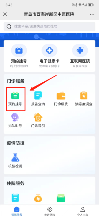關(guān)注醫(yī)院微信公眾號或下載慧醫(yī)App,選擇預(yù)約掛號—選擇“國際門診號”。