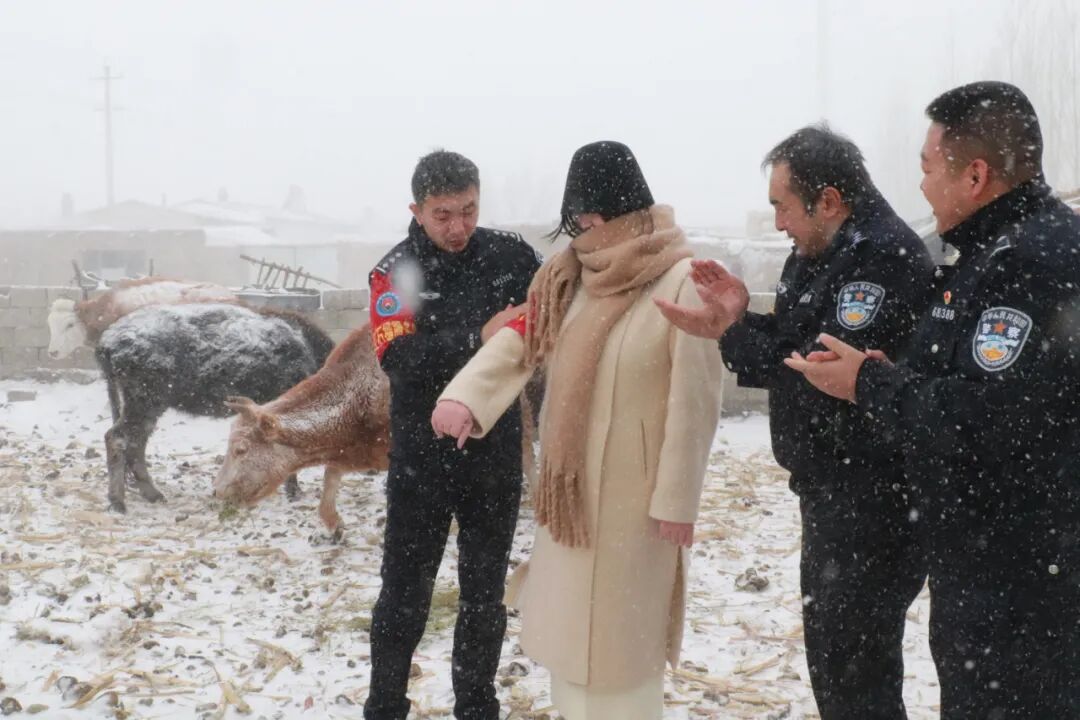 21日早晨,紅柳峽邊境派出所的第一聲哨聲響起,陳尚便和薛琨一起來到了花兒刺村牧民胡安拜克·阿提拜家的牛棚里幫忙喂羊喂牛,因?yàn)閯傁逻^一場雪,69歲胡安拜克·阿提拜腿腳不方便,陳尚便經(jīng)常和紅石榴服務(wù)隊(duì)隊(duì)員來幫忙。紅石榴服務(wù)隊(duì)是由邊境派出所民警組成的以服務(wù)好紅柳峽牧民為目的的隊(duì)伍。