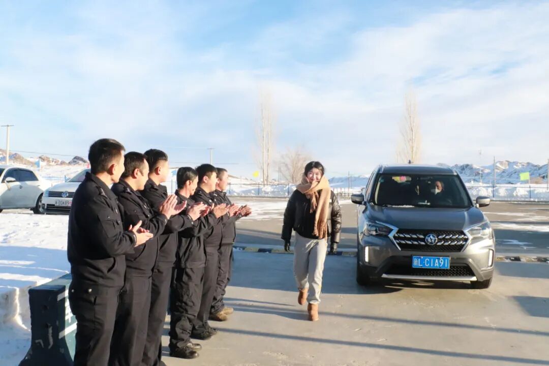 陳尚和派出所民警們整整齊齊地站成了一排,看到薛琨走下車后,大家紛紛鼓掌歡迎。
