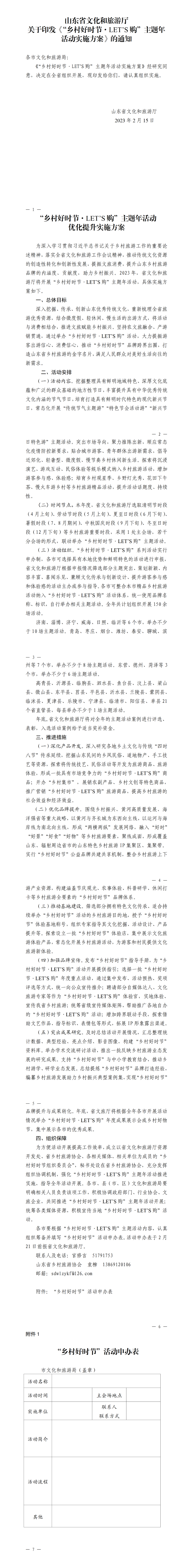 為提振文旅消費(fèi),提升山東鄉(xiāng)村旅游品牌的內(nèi)涵度、貢獻(xiàn)度,近日,山東省文化和旅游廳發(fā)出通知,確定今年開(kāi)展“鄉(xiāng)村好時(shí)節(jié)·LET’S購(gòu)”主題年活動(dòng)。