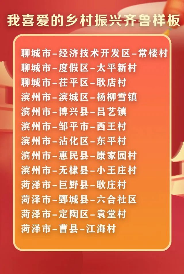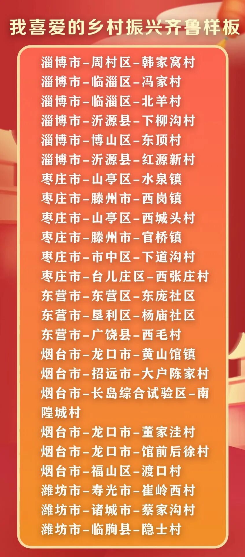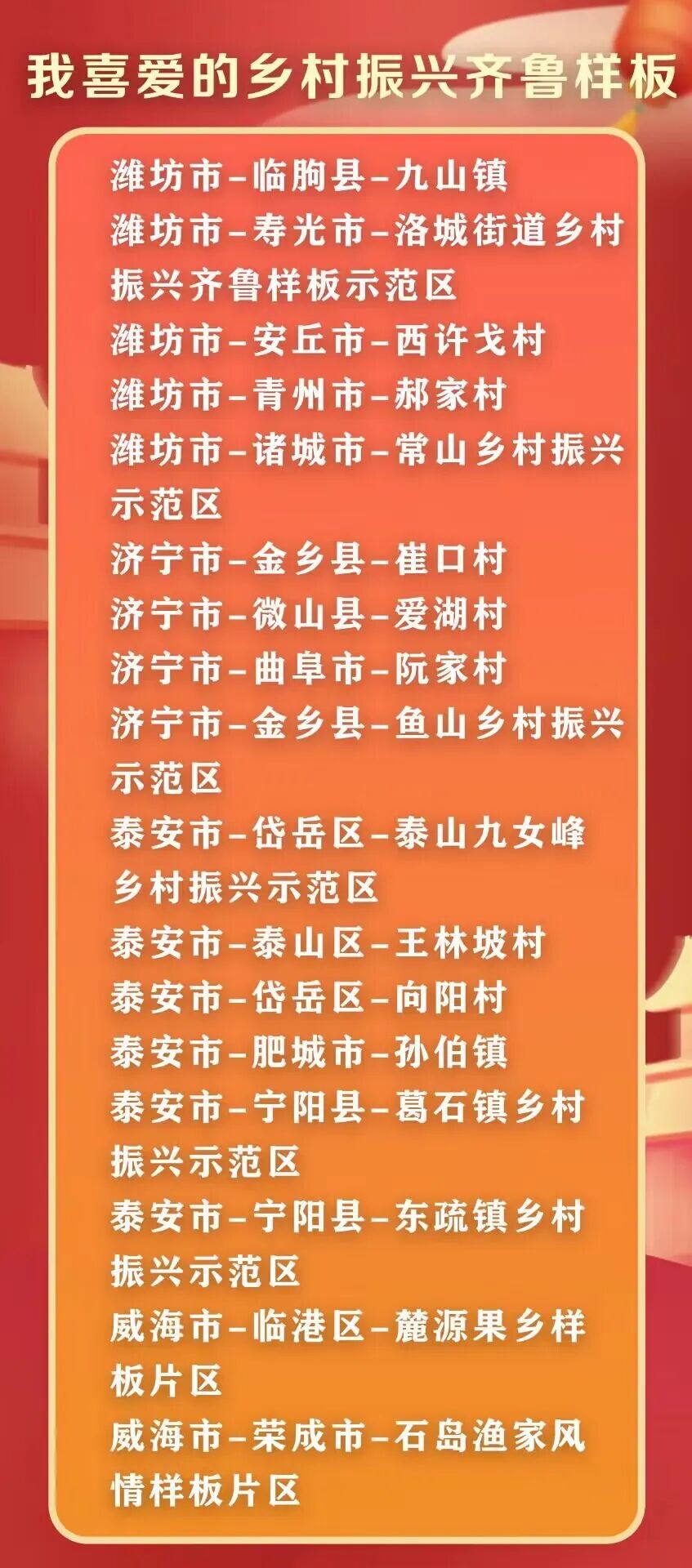 附:“我喜愛(ài)的鄉(xiāng)村振興齊魯樣板”名單