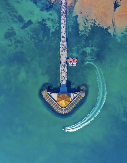 漫步棧橋之上,碧波在腳下起伏