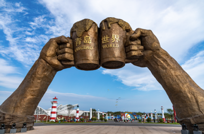 一旁的青島金沙灘啤酒城旅游休閑街區(qū)